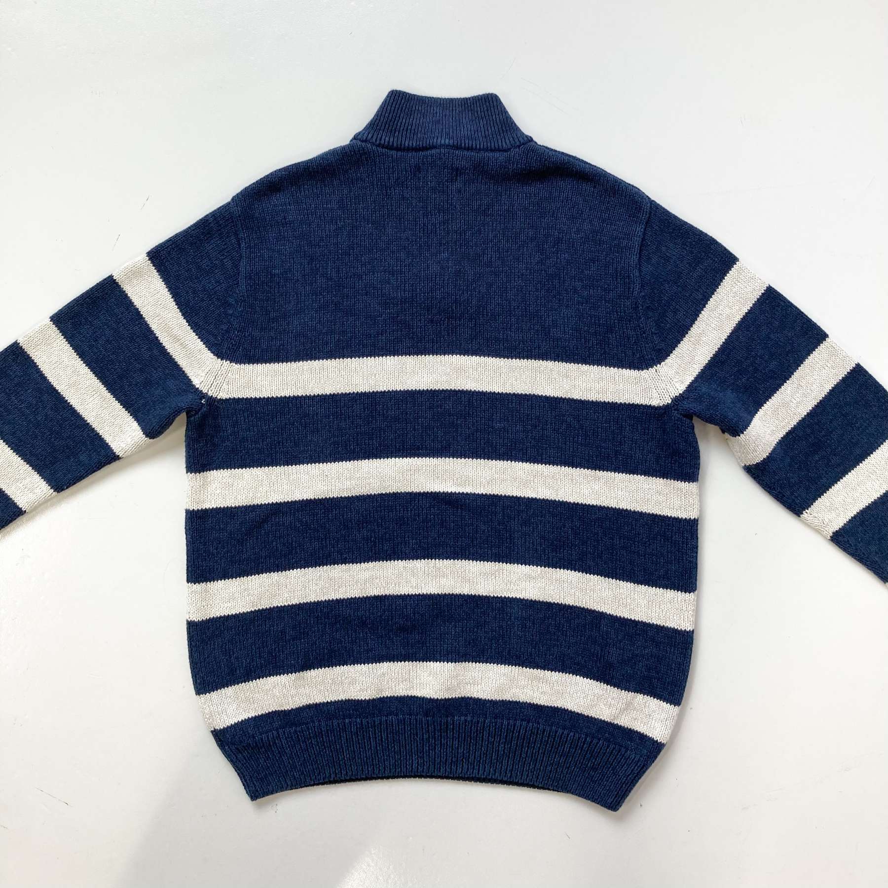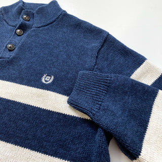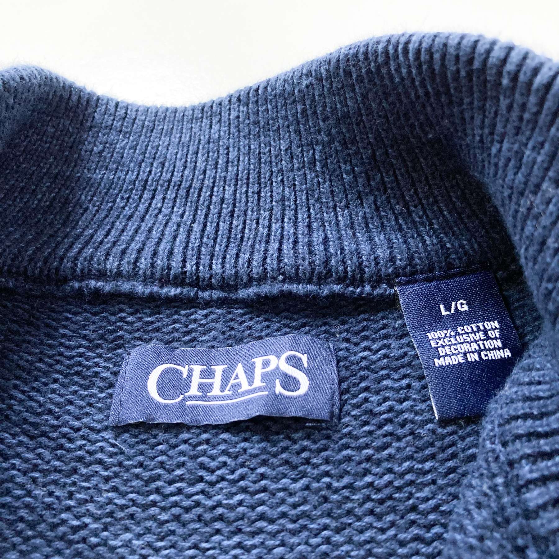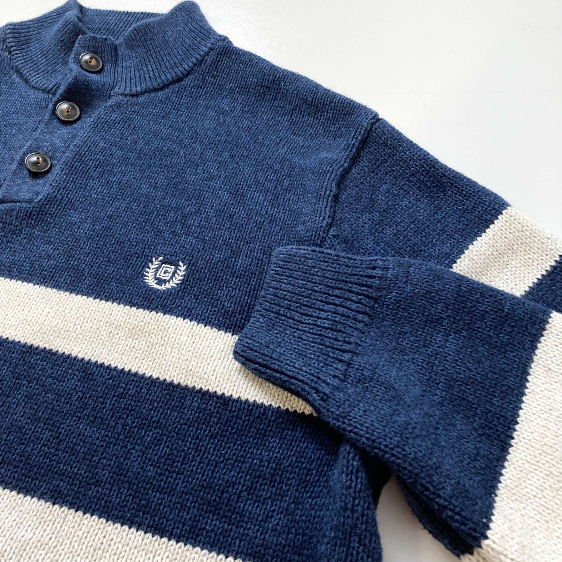 古着 CHAPS ライン プルオーバー コットン ボタン付きハイネック ボーダーニットセーター