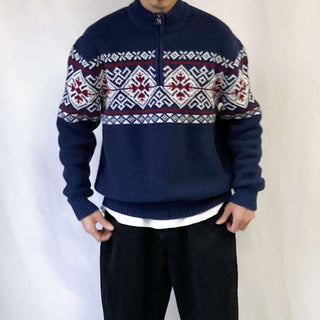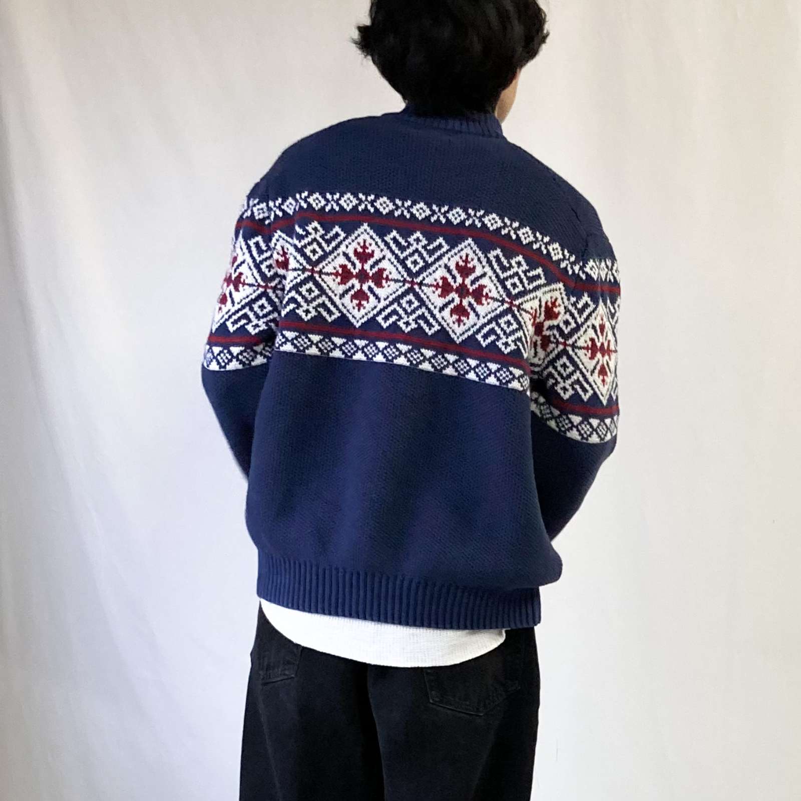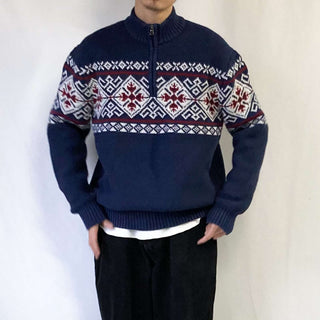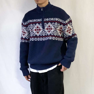 古着 IZOD ネイティブ柄 ハーフジップ コットン ニット セーター
