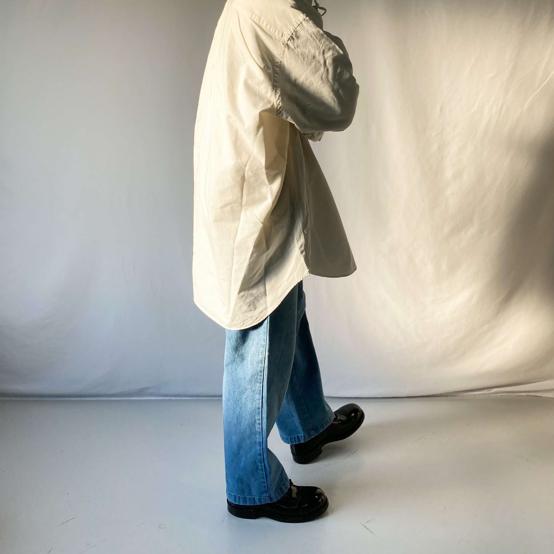 サイズが大きいので、インナーとしても羽織りとしても着れて、きれいになりすぎずカジュアルにも着れる万能なアイテムです。