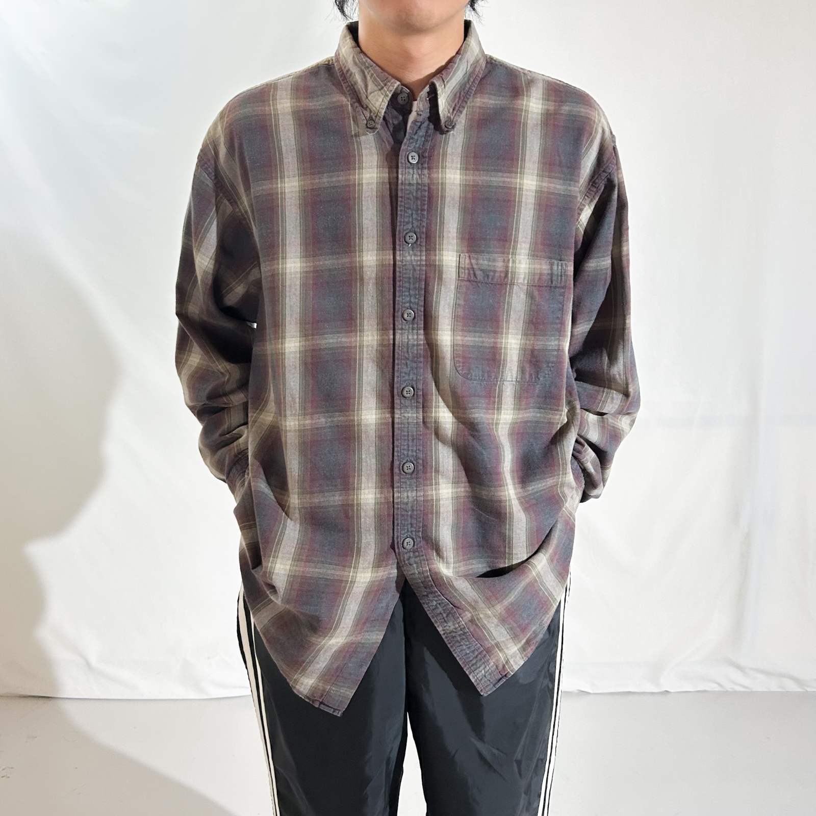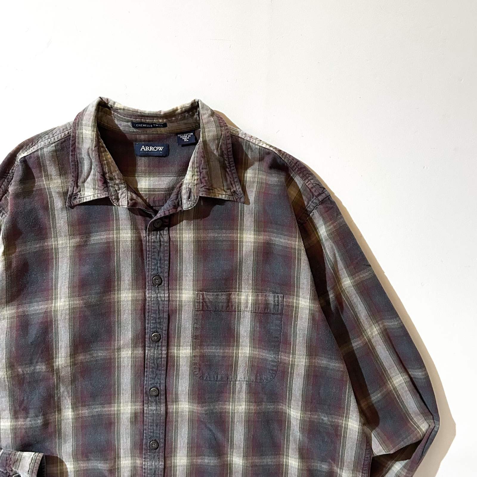 00's ARROW オンブレ風 チェック ボタンダウン L/Sネルシャツ