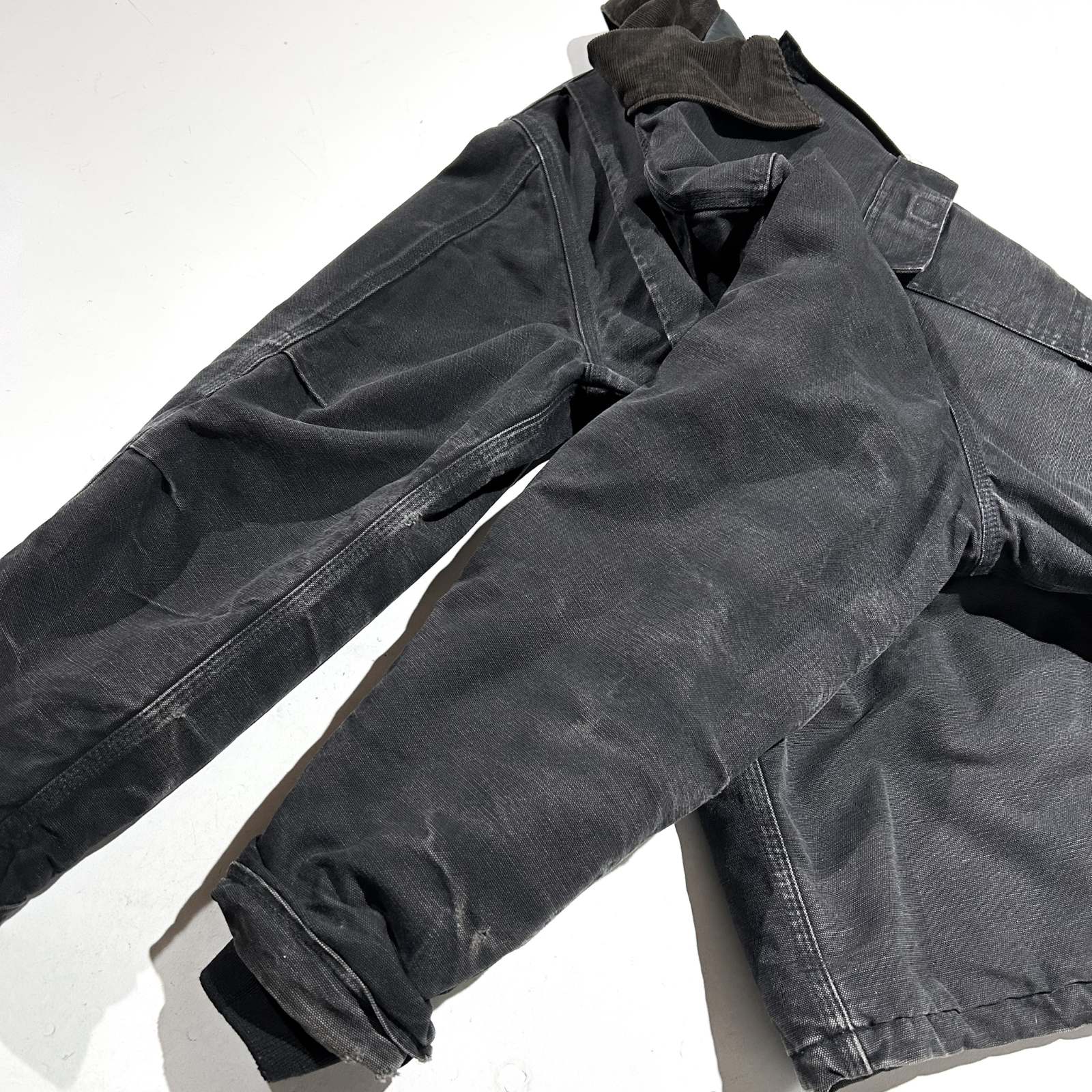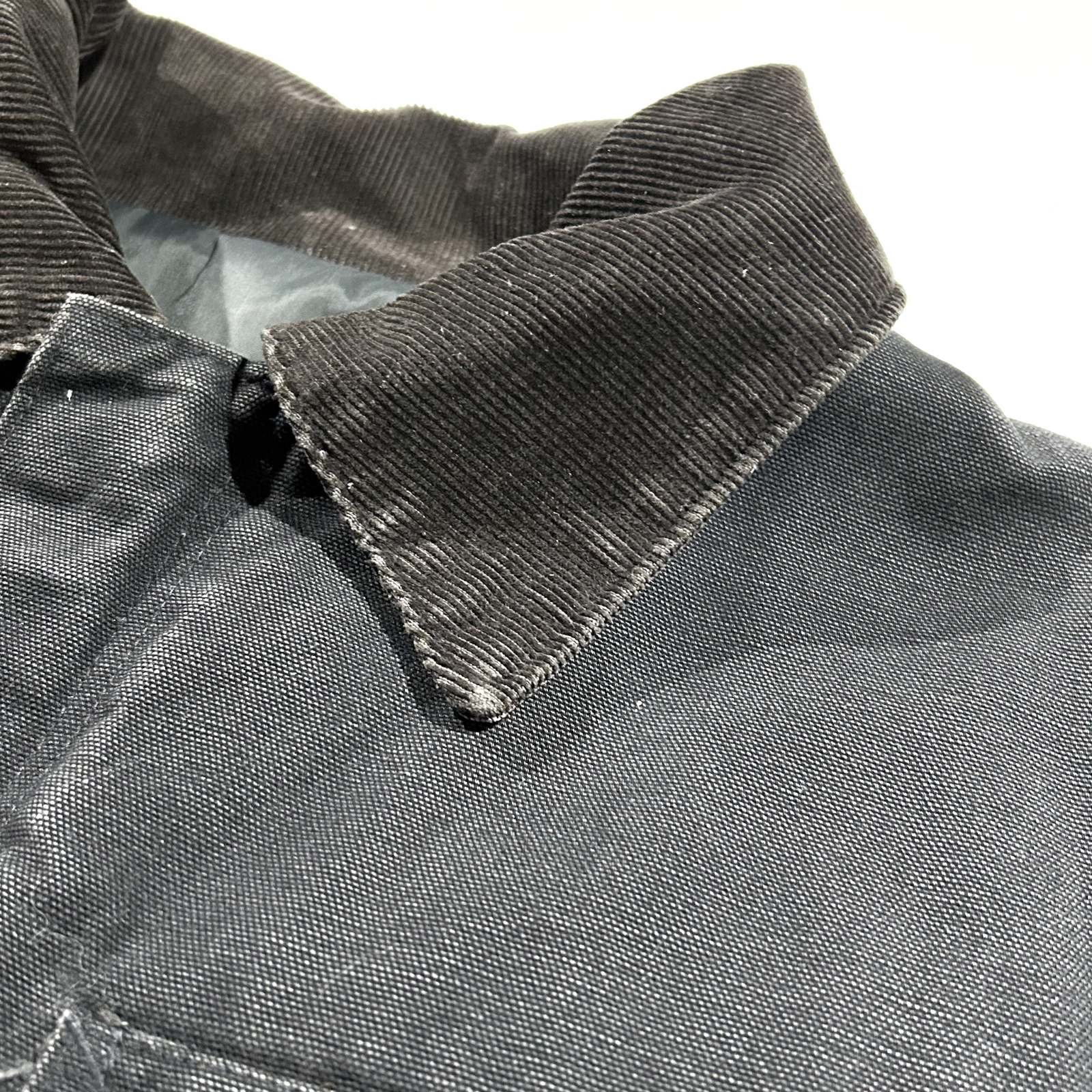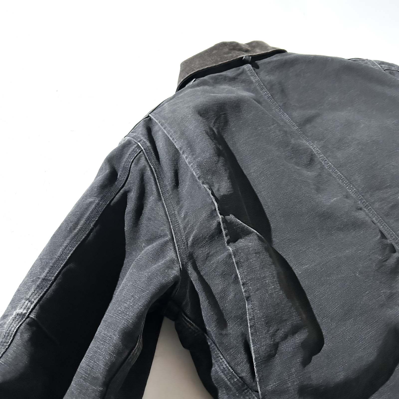 〈Carhartt トラディショナルコート〉。 アメリカの老舗ワークブランド〈Carhartt〉を代表する定番モデル「トラディショナルコート」。無骨なワークスタイルを象徴する1着です。カラーはブラックで、全体にフェード感があり、リアルワーク由来の味わい深い雰囲気。袖の擦れやぼろ感も古着ならではの魅力で、ヴィンテージらしい表情を引き立てています。 裏地はキルティング仕様で保温性も高く、秋冬のアウターとして実用性も◎。Carharttの現行ヨーロッパライン“WIP”では表現できない無骨さとリアルワークの説得力が、このモデルの真骨頂。まさに“本家”の風格を感じられる一着です。
