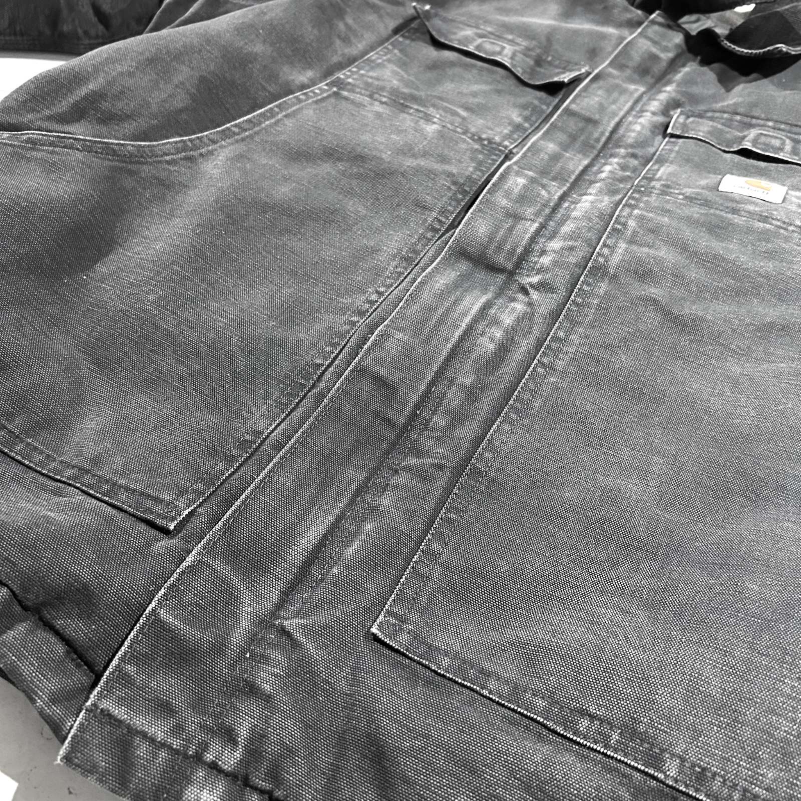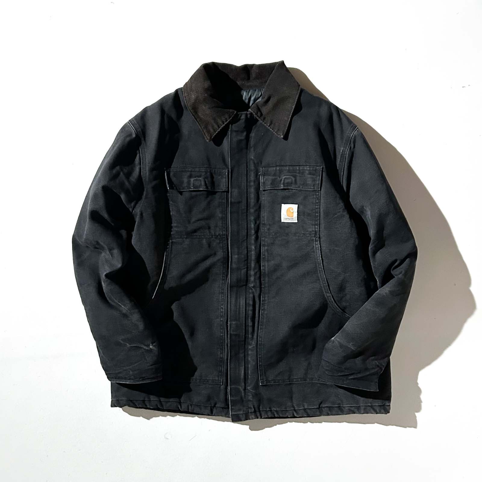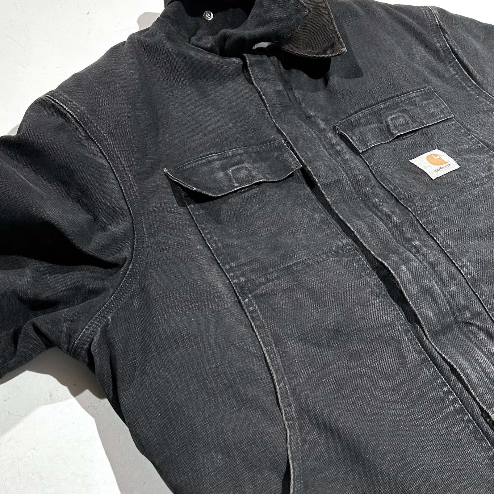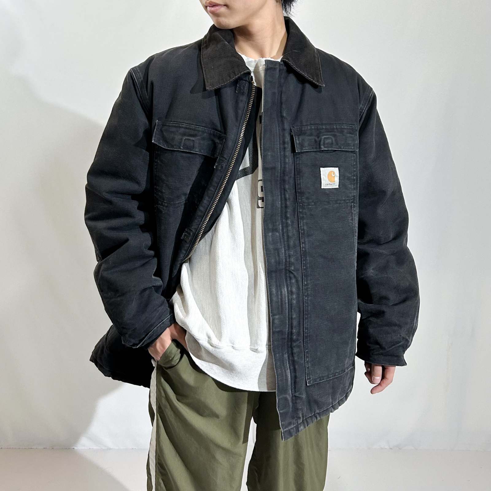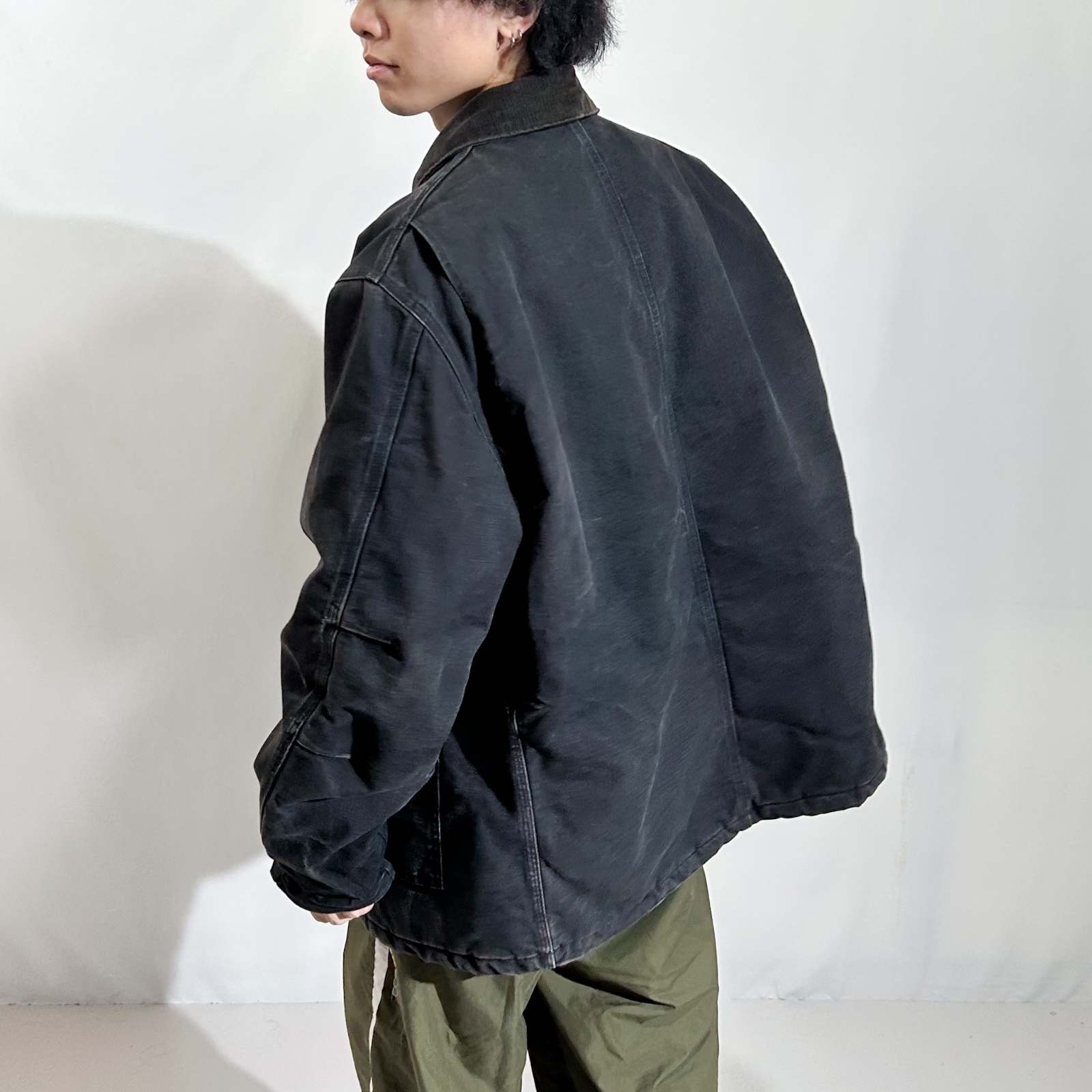 00's Carhartt ブラック 裏キルティング フェード ダック トラディショナル コート