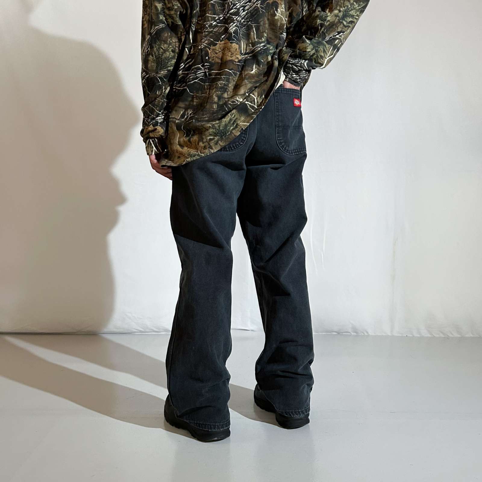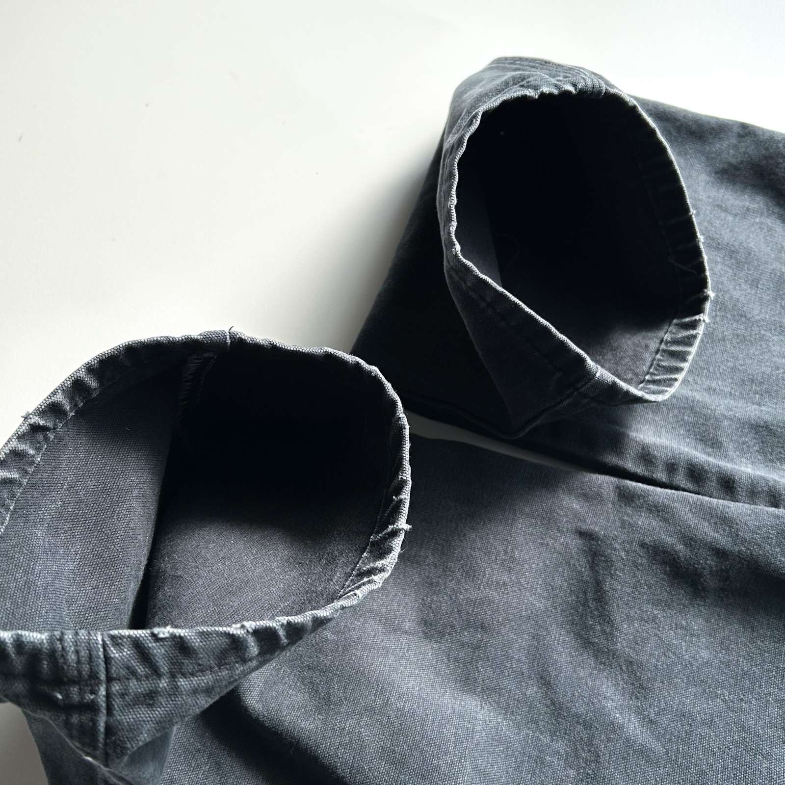 無骨さが魅力のダック生地を使用した、存在感抜群のワークパンツ。新品では出せない、リアルな使用感によるフェード感がヴィンテージ好きにはたまらない一本です。 太もも約36cm、裾幅24cmと全体的にゆったりとした太めのシルエットで、LEVI’S 550や560のようなバギー感のある履き心地が特徴。ラフに穿いてもサマになり、ワークスタイルはもちろん、ストリートに落とし込んでも◎。 タフさと雰囲気を兼ね備えた、使い込まれてこそ映える1本です。