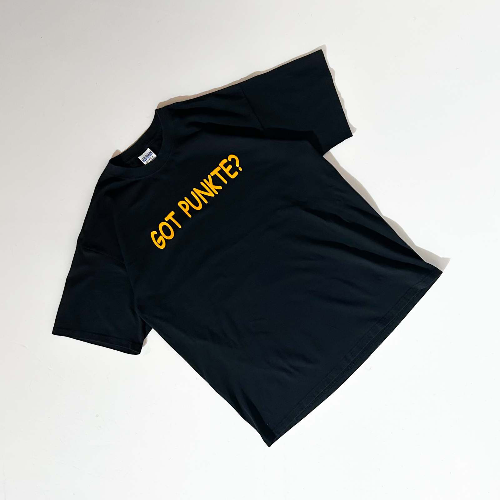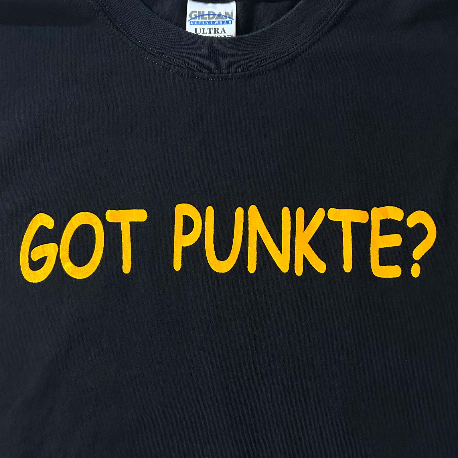 00's GILDAN "GOT PUNKTE?" 両面プリント パロディ メッセージ Tシャツ