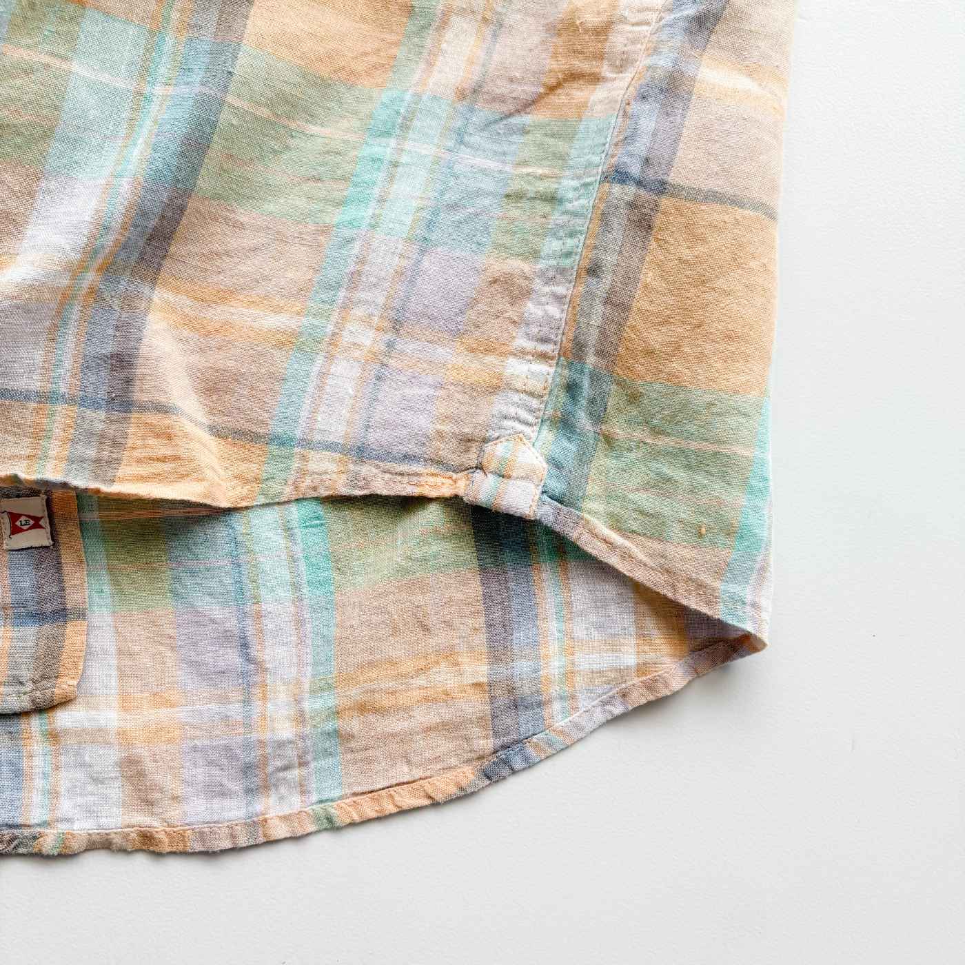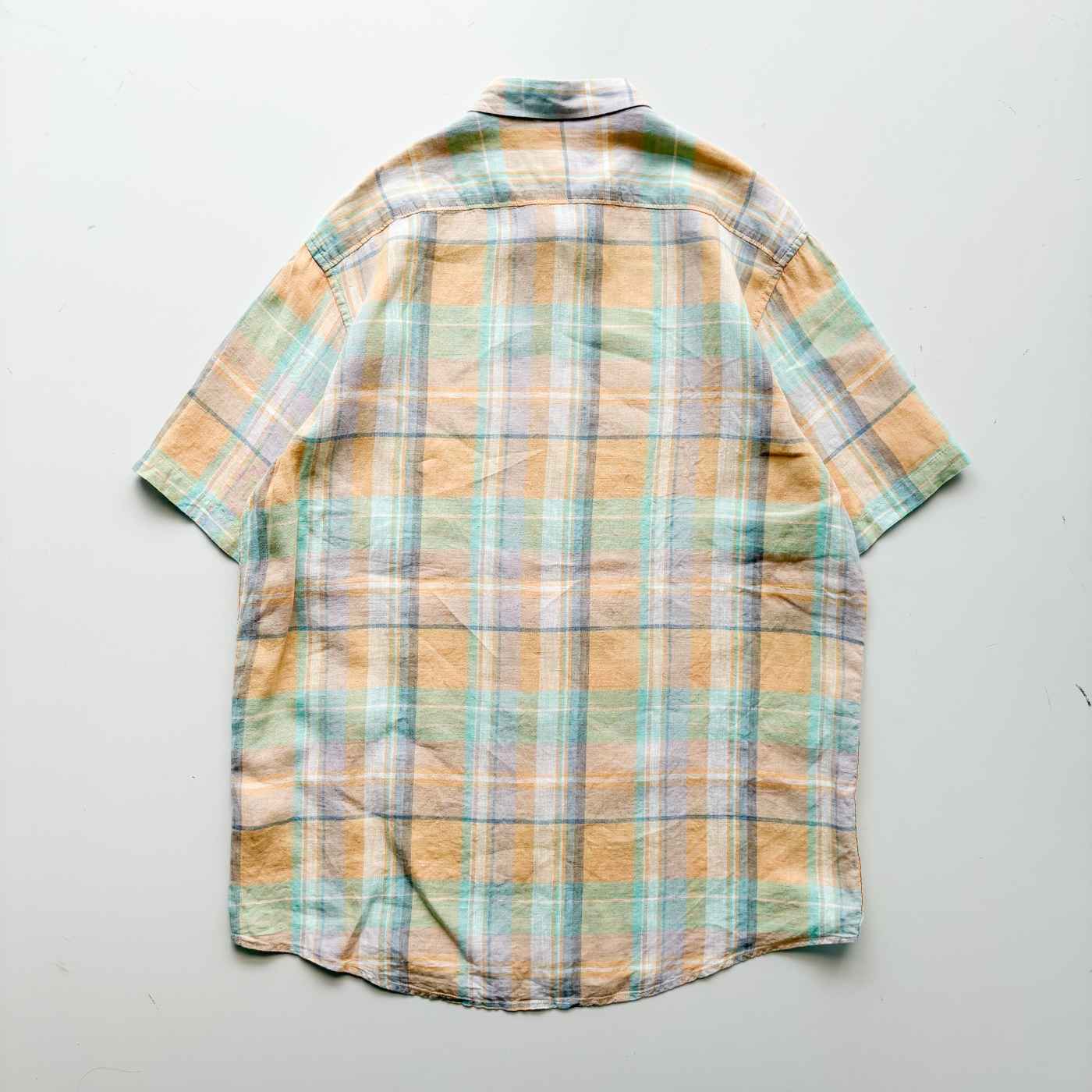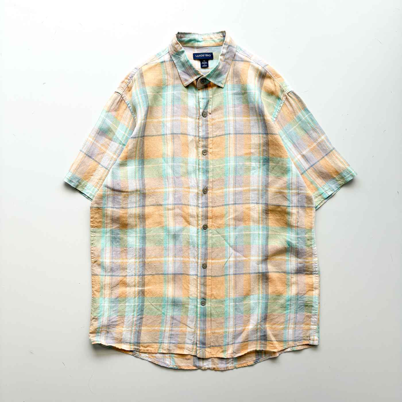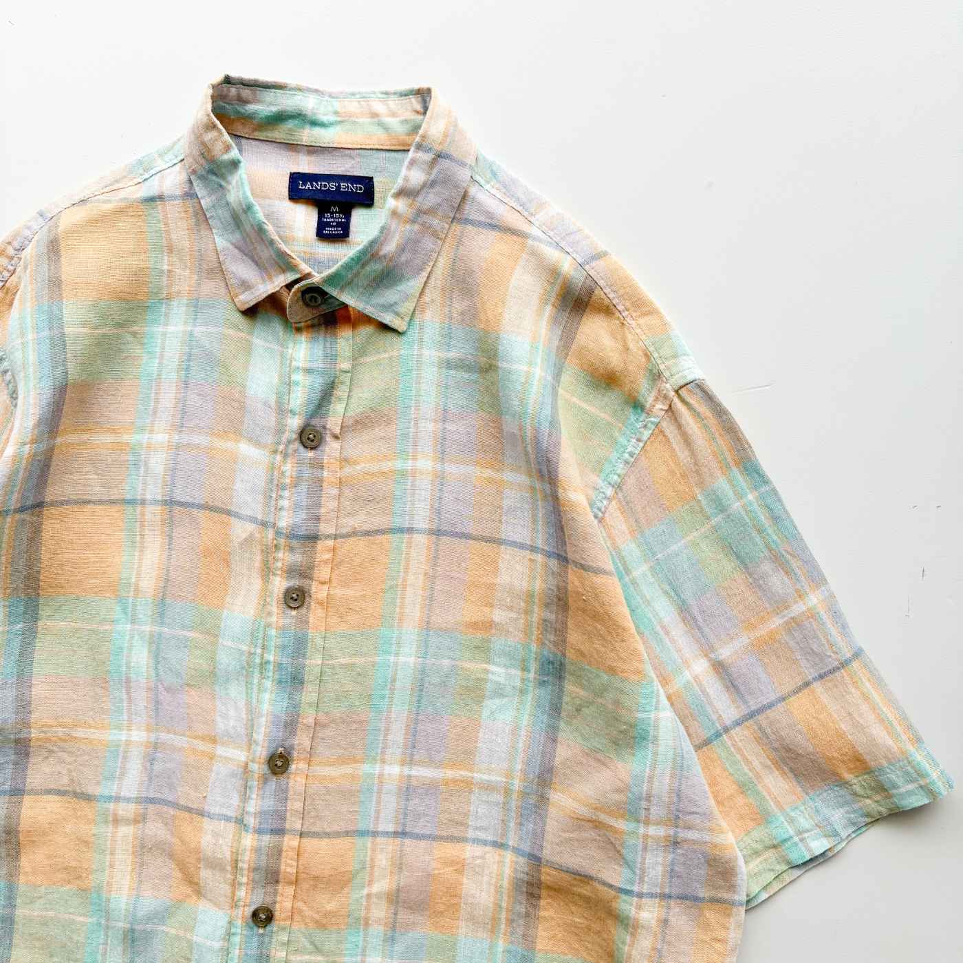 00年代 ランズエンド 麻 半袖シャツ チェックシャツ アメカジ