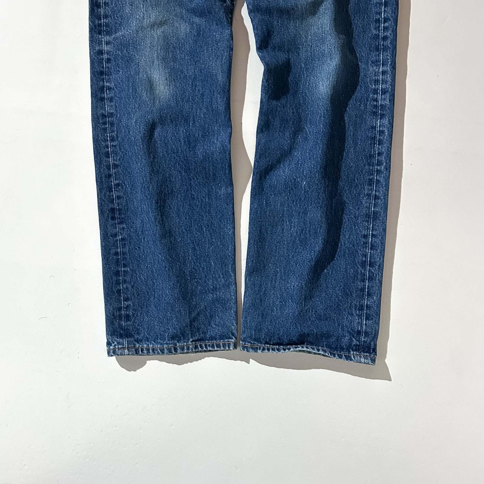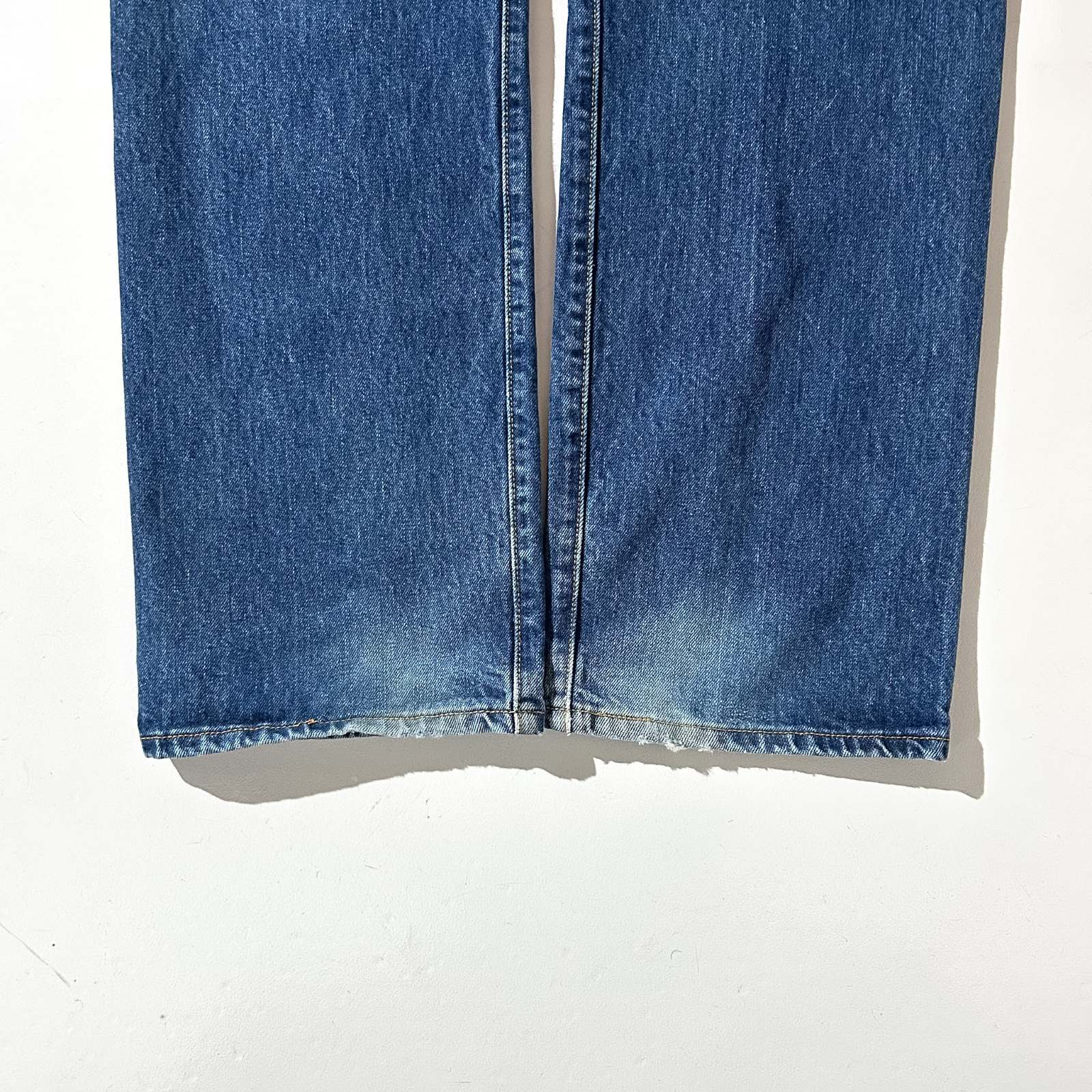年々見かける機会が減ってきたこの辺りの年代の Levi’s 501。 このタグの個体も、古着市場では徐々に見つかりにくくなってきました。 色残りの良さに加えて、アタリやヒゲの入り方も抜群。 しっかりと穿き込まれたデニムならではの雰囲気が魅力です。 メキシコ製ではあるものの、色落ちや風合いはアメリカ製にも引けを取らない1本。 良い表情の個体をお探しの方におすすめです。実寸ゴールデンサイズの神サイジング◎