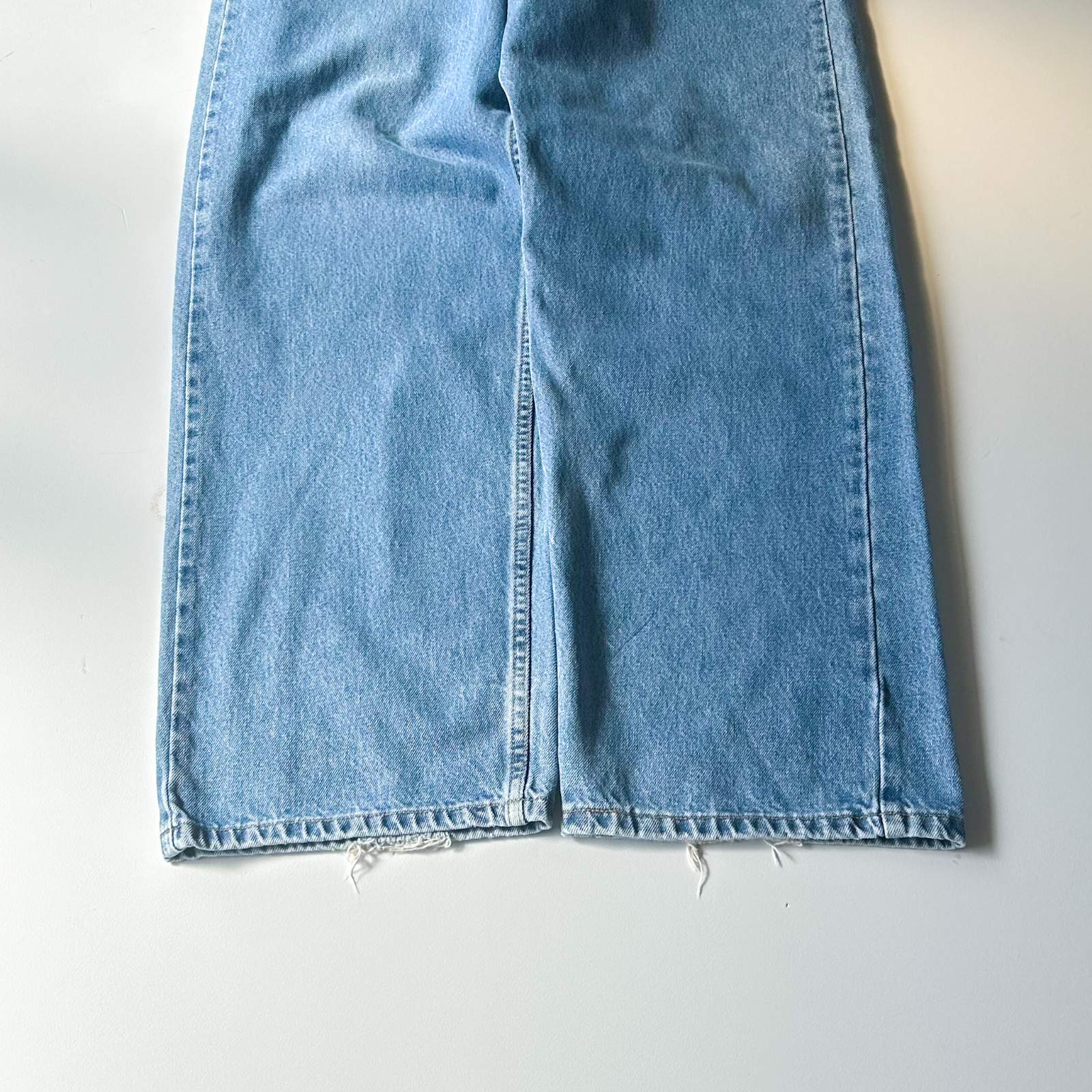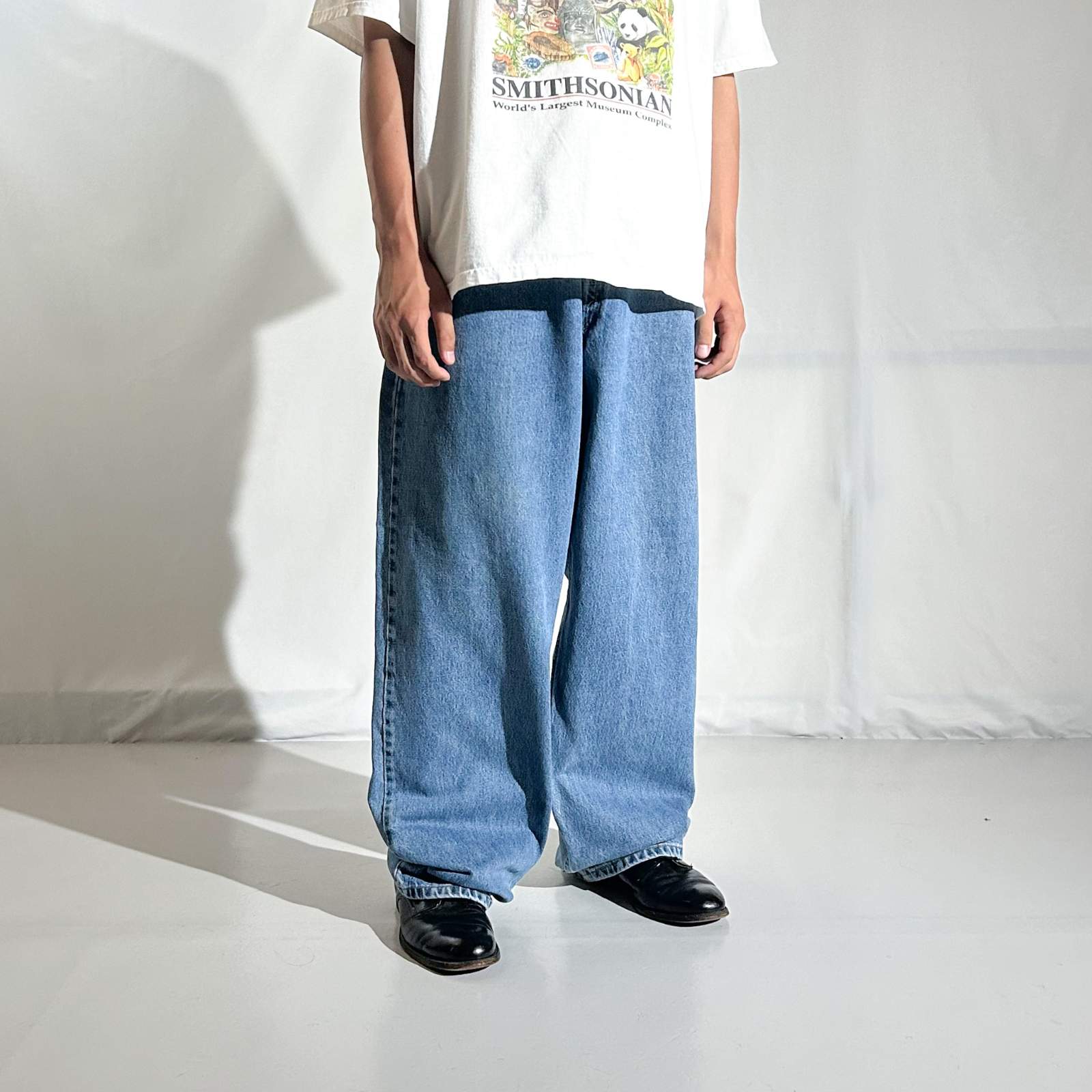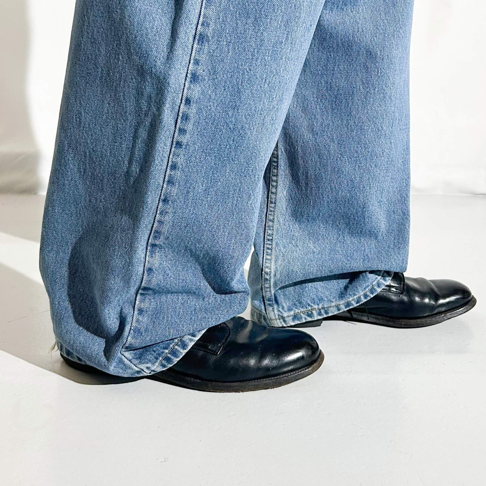 当時のB-BOYカルチャーで一躍人気となったワイドストレートモデル。股上は深めで、リーバイスの中でも最もゆとりのあるシルエットです。今回入荷したのはウエスト大きめサイズが2本。 裾にかけてほんのりテーパードしたシルエットなので、ワイドでありながらもダボつかず、スッキリとまとまりのあるバランス感が魅力。 特にスニーカーとの相性は抜群で、裾がもたつかず足元がスマートに見えるのでスニーカーのボリューム感を引き立ててくれます◎