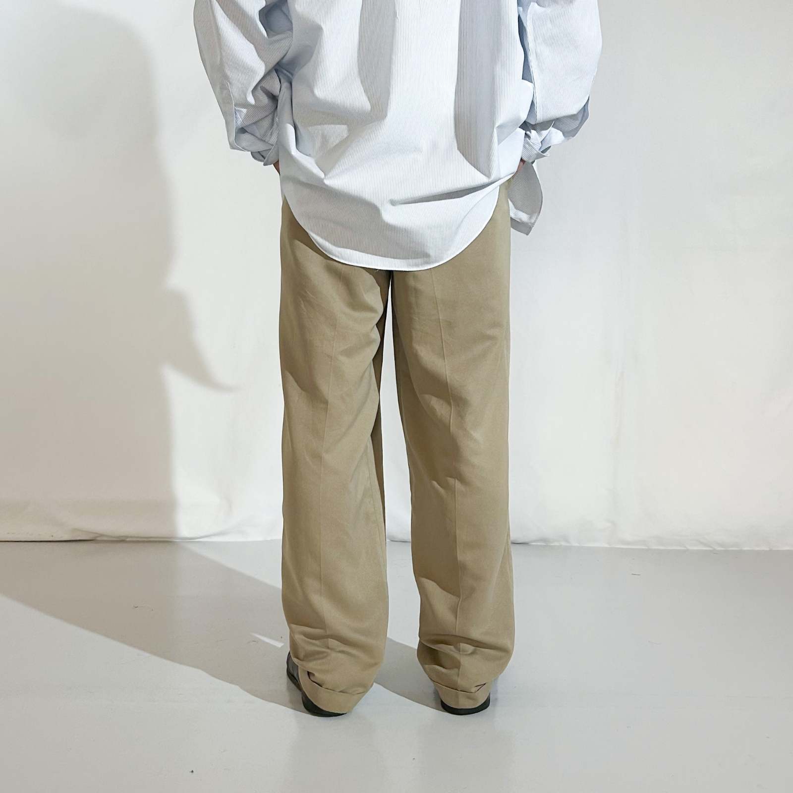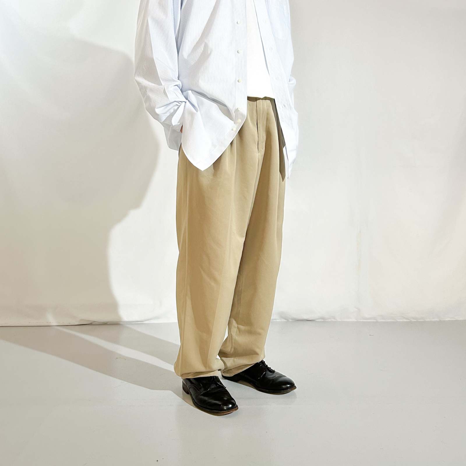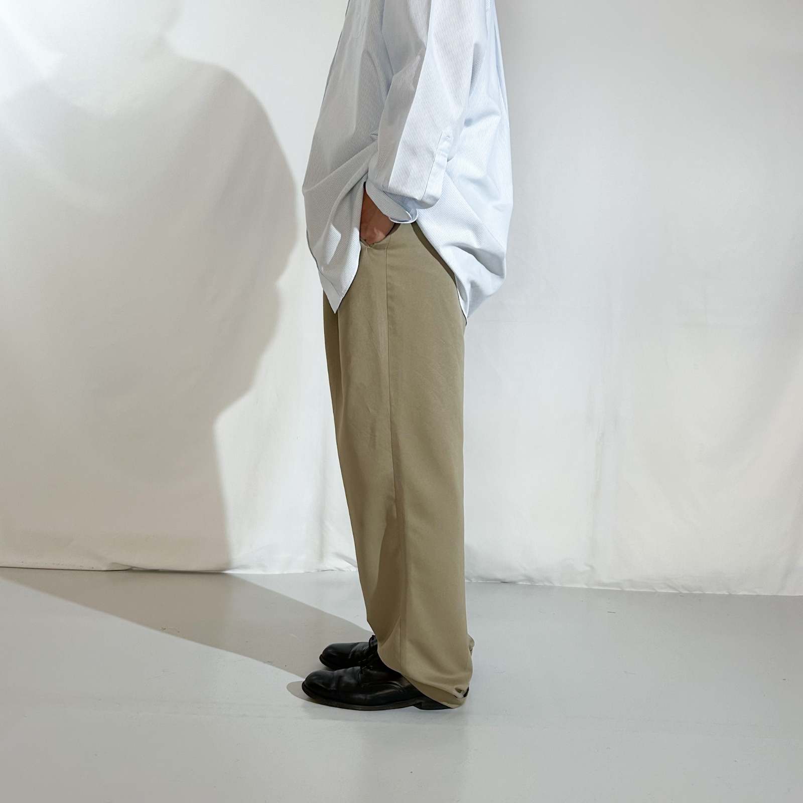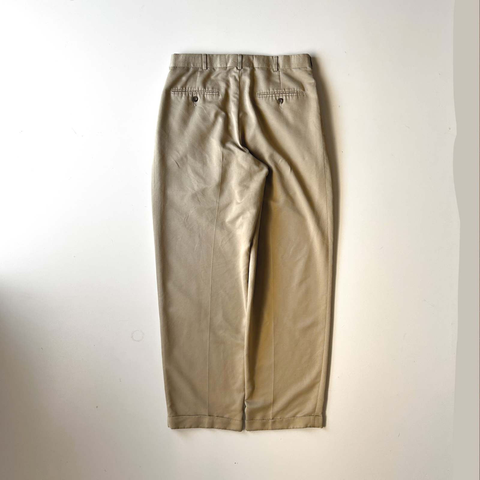 【Webスタッフ大鹿のおすすめ商品】普通の入荷でも出している**リーバイスのスラックスライン「SLATES(スレイツ)」**ですが、今回も僕の好きなアイテムということでおすすめ枠でチョイスしました。 しかも今回は珍しい3タック仕様。…さらに生産国は**ドミニカ共和国(Dominican Republic)**で、古着好きからも評価の高い時代の一本です。 ベージュカラーで、キレイめなチノパン感覚でも履ける万能さ。渡りはしっかりゆったりめ、裾にかけては緩やかなテーパード。ただし裾幅も十分あるので、いわゆる細くなりすぎる感じはありません。 シルエット的には、古めのPOLO CHINOや00年代のLevi’s 560のような、街でも使いやすいワイド寄りのリラックスシルエットに近いです。 ちなみに、70年代のLevi’sには**「Panatela(パナテラ)」というスラックスラインもありましたが、あちらはもっと70s感が強め。起毛素材やフレアシルエットなどレトロな印象が強いです。 それに対して今回のSLATESは現代にも通用する都会的でスマートな1本**。ジワジワ人気になってきているので、今のうちにいかがでしょうか?
