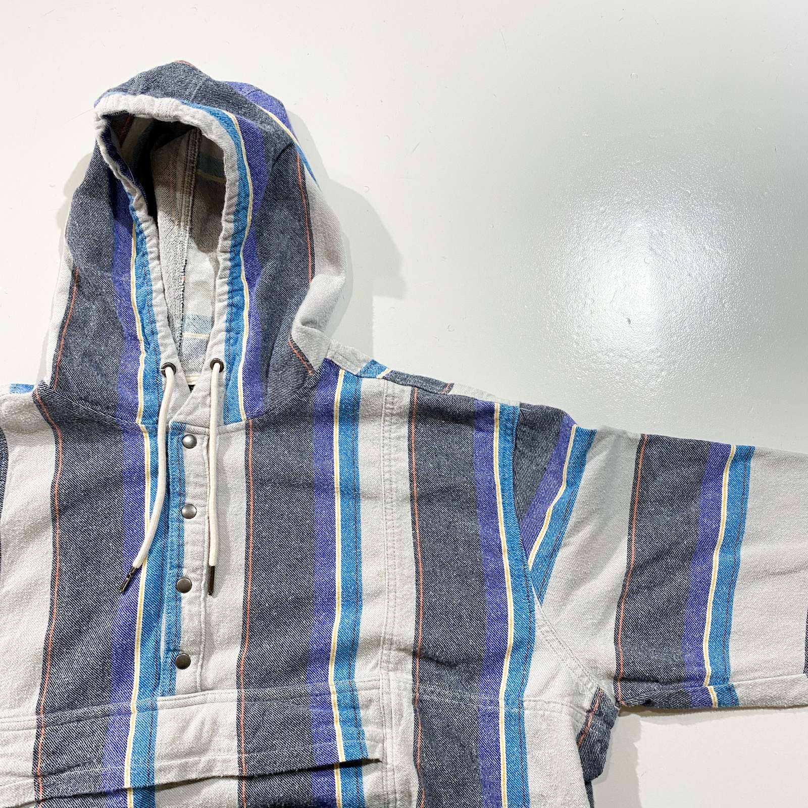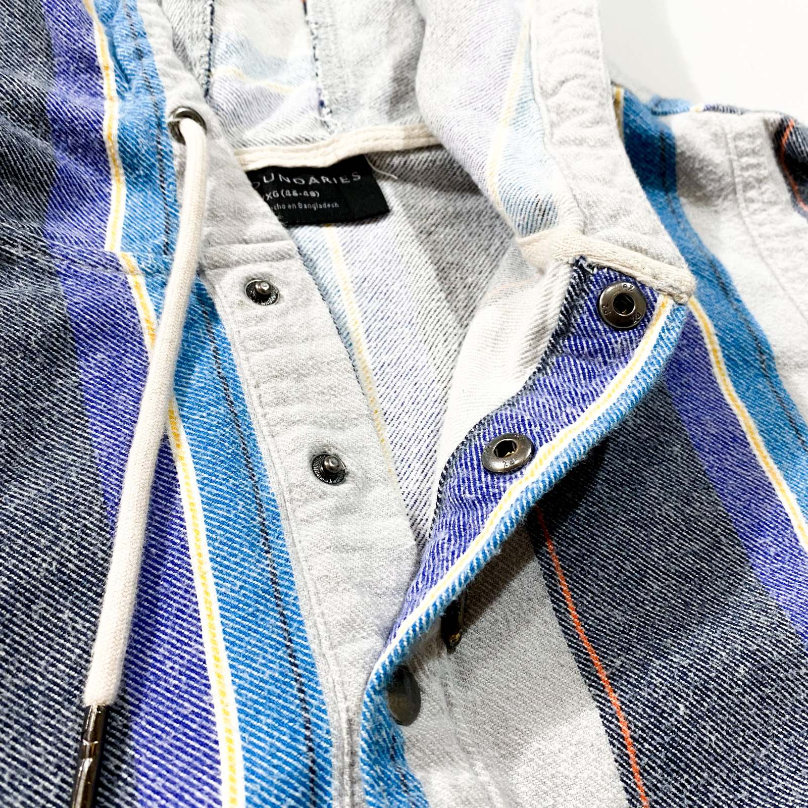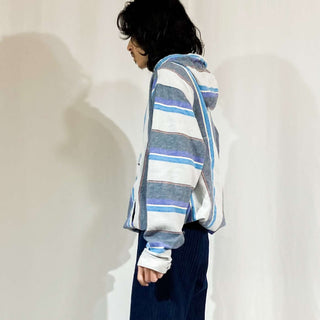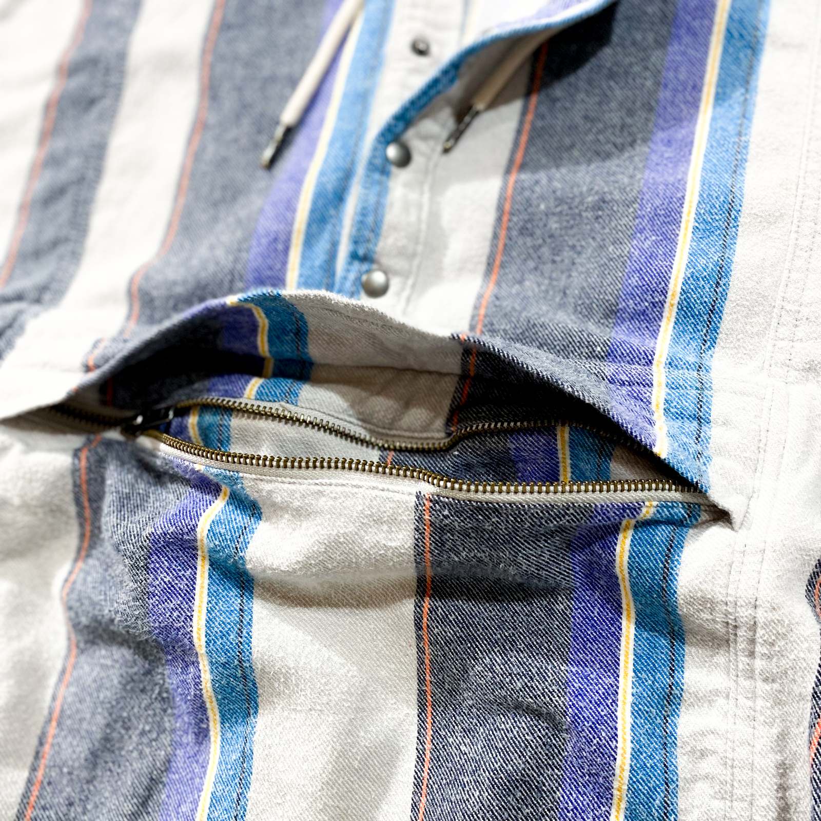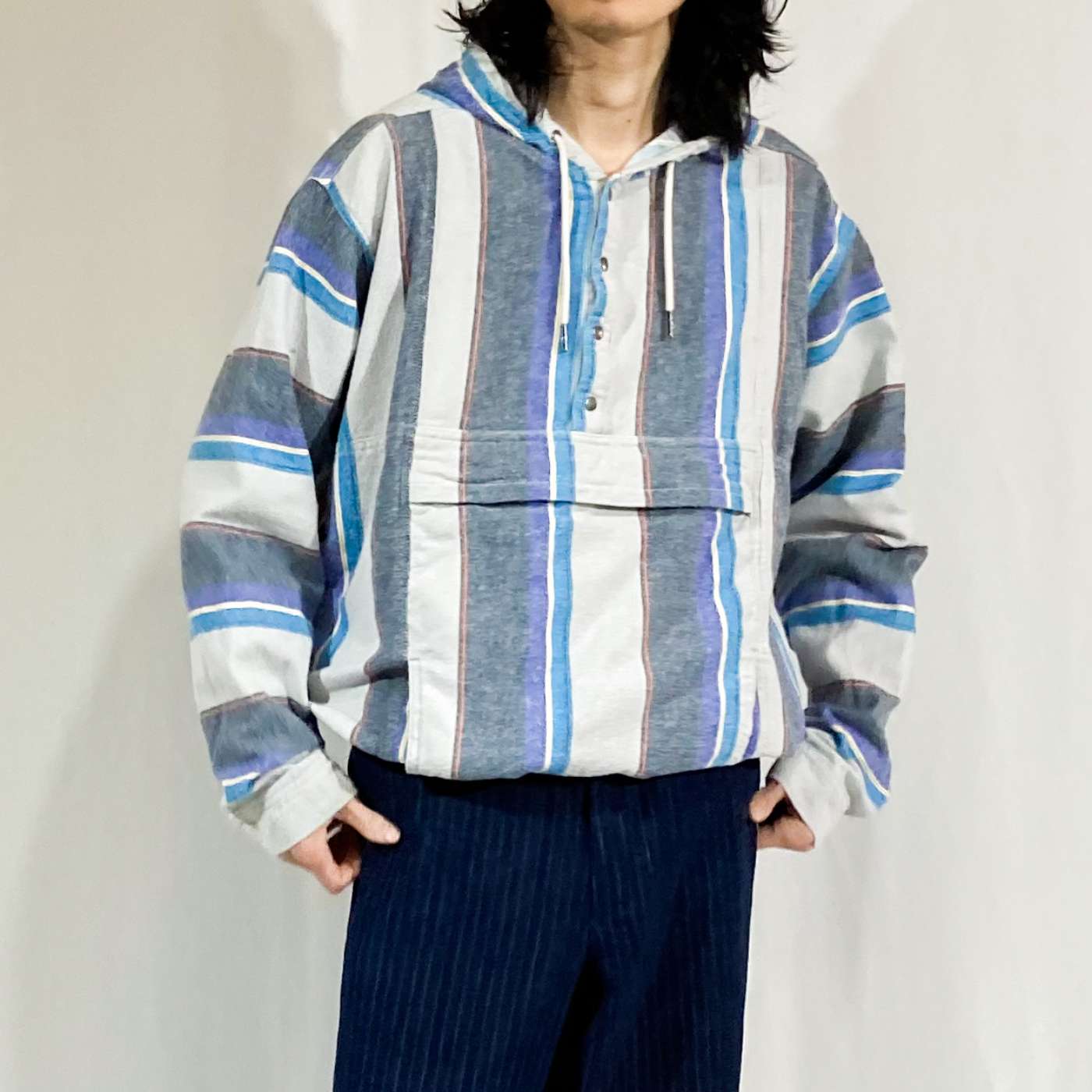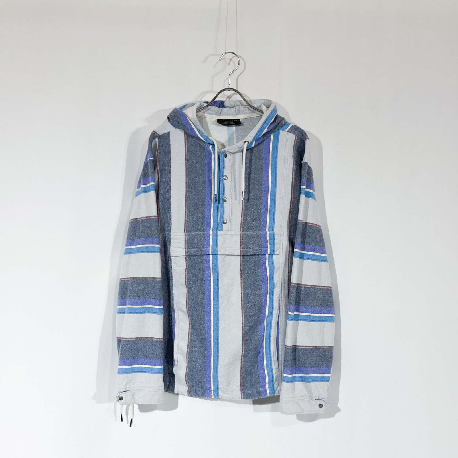 NO BOUNDARIESのアノラックパーカになります。 ストライプ配色のアノラック。なかなか見ないアイテムですね!GAPのボーダーアノラックのようなデザインで好きです。