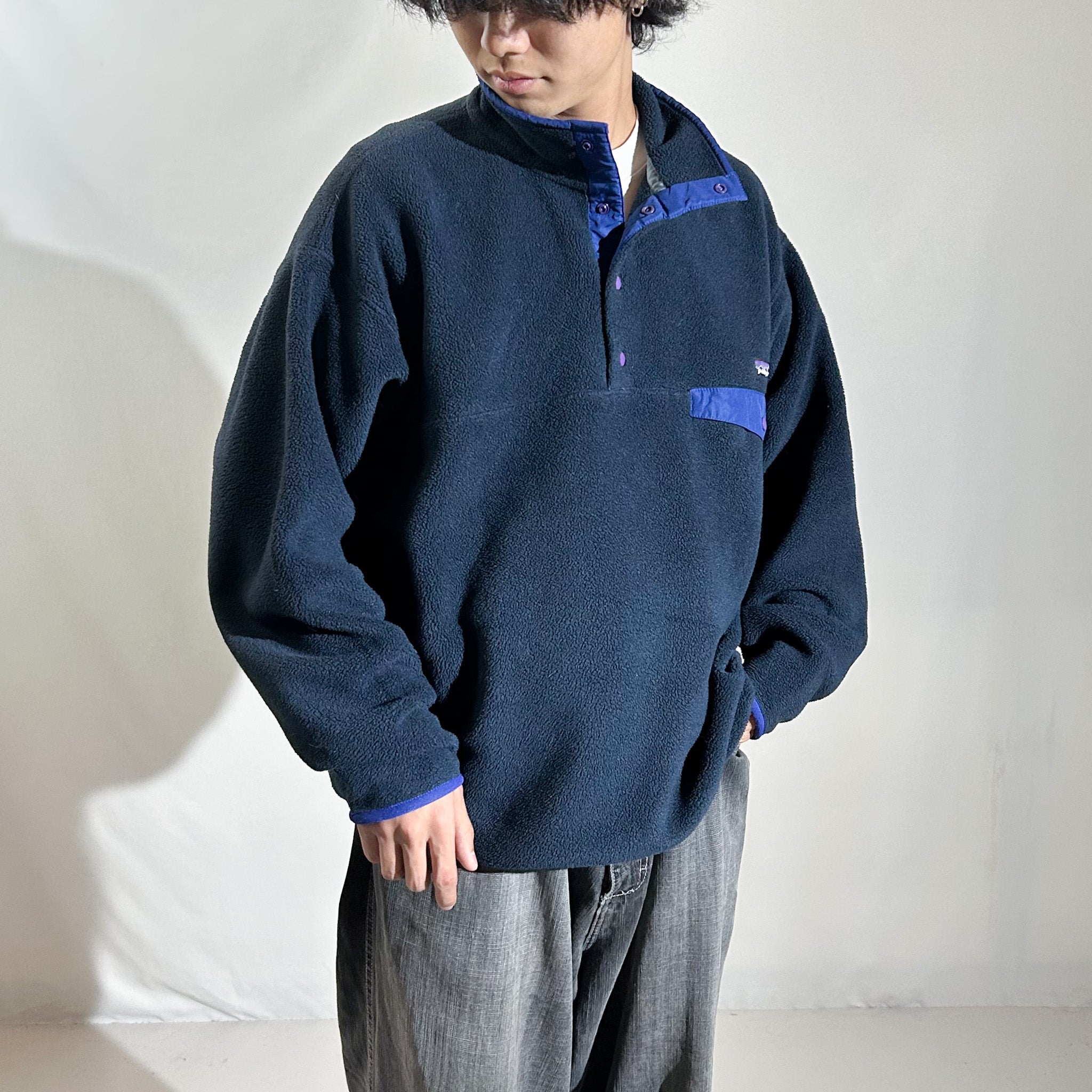 00's Patagonia ダークネイビー×ブルー スナップT フリース プルオーバー ジャケット