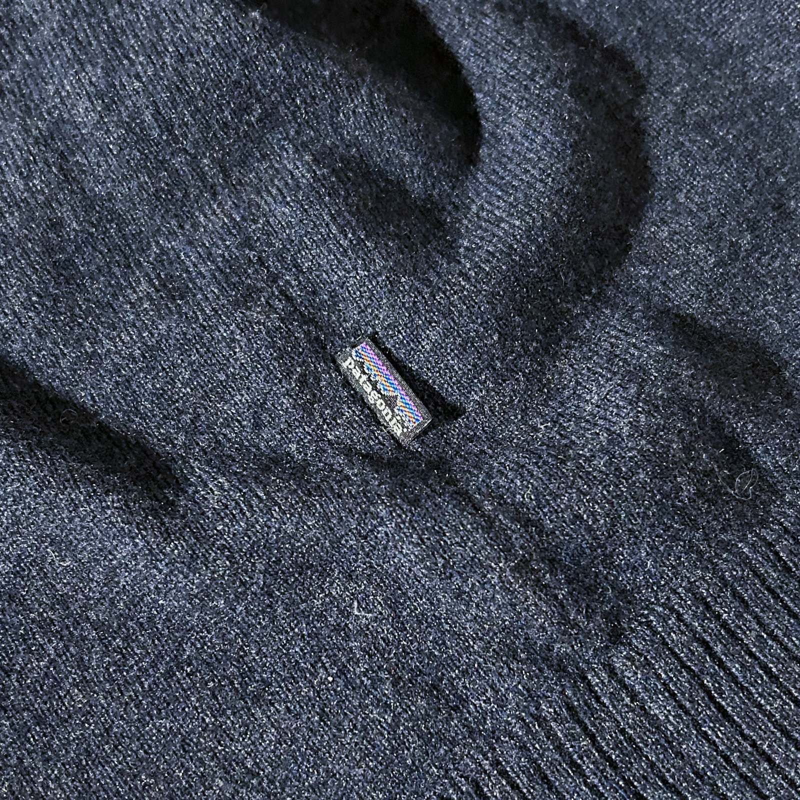 Patagoniaのニットセーターになります。メランジのような ラムズウールを使用。ラムズウールとは生後5-7ヶ月までの毛足の細い子羊の毛を使用した高級素材のひとつ。ウール特有のチクチク感がなく素肌に着ても全然着用出来てしまうんです〜。僕アトピー持ちの超敏感肌ですが、全然チクチクしませんでした。コットンもアクリルも万能で好きな素材ですが…やっぱり本当に良いとされるニットセーターは、ウールの素材だと僕は思っているのでオススメです。170cm細身のモデルで肩に多少落ち感、身幅にゆとり、着丈はミドル丈、袖丈溜まるシルエット。