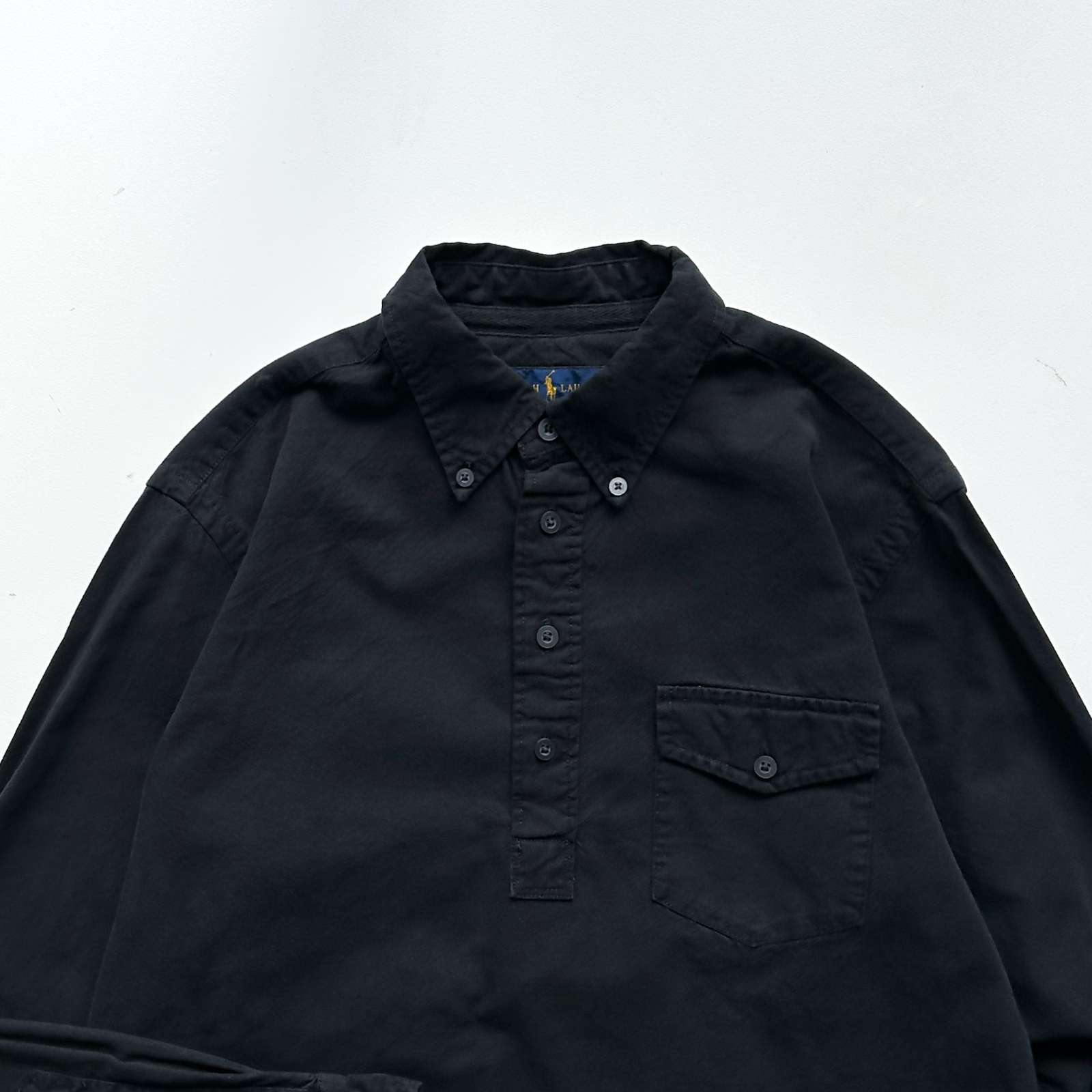 00's RALPH LAUREN ブラック 3点留め ハーフボタン L/Sシャツ