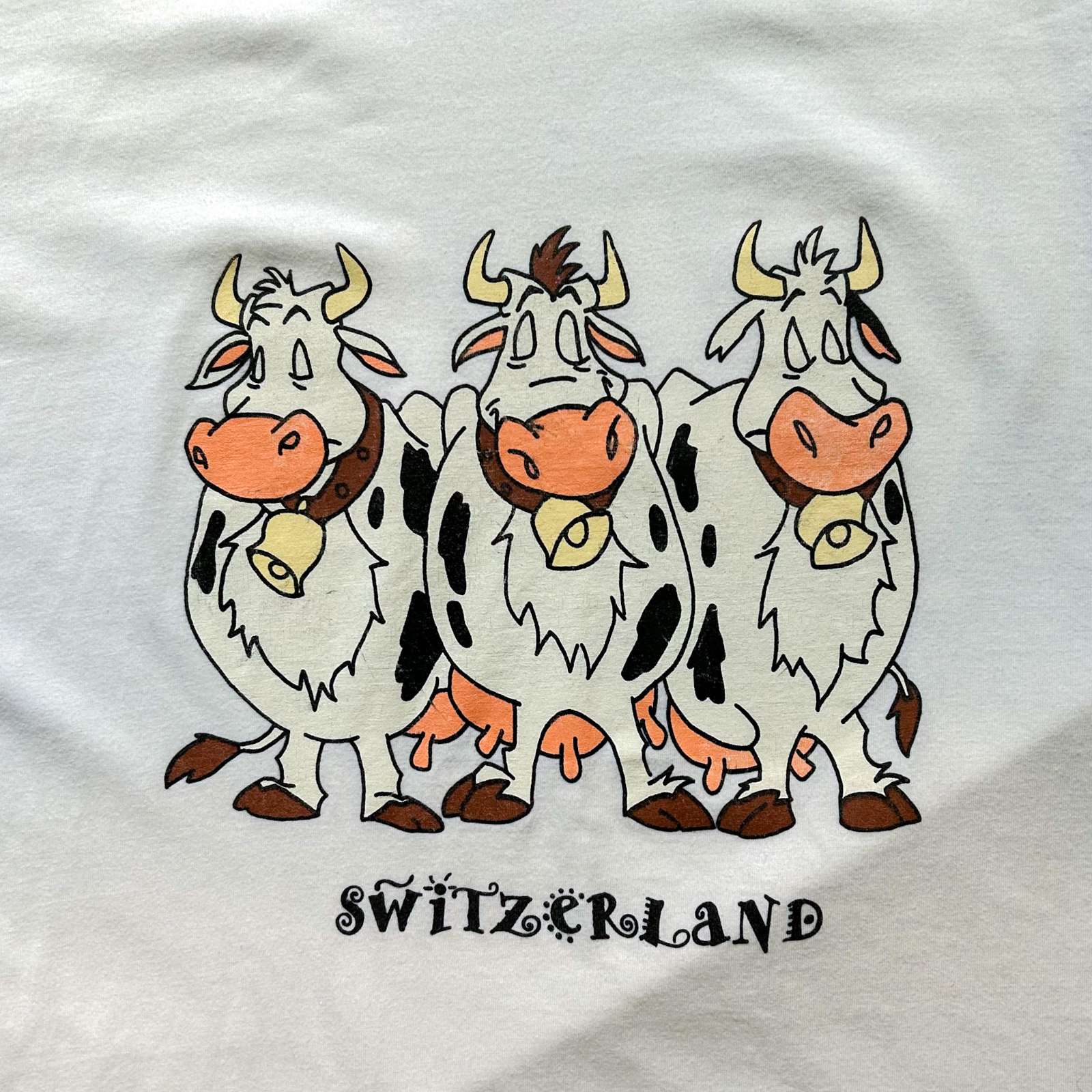 To Be Different意味は、''みんなと違っても、それがいい''。3頭の牛のうち、真ん中の牛だけがジーンズを履いていて後ろ姿が違う、個性を肯定するポップなプリントTシャツです。