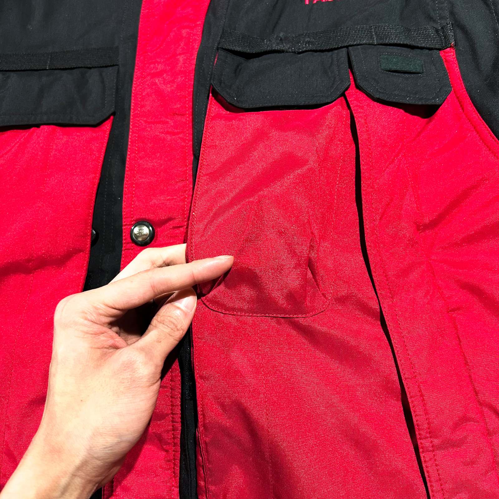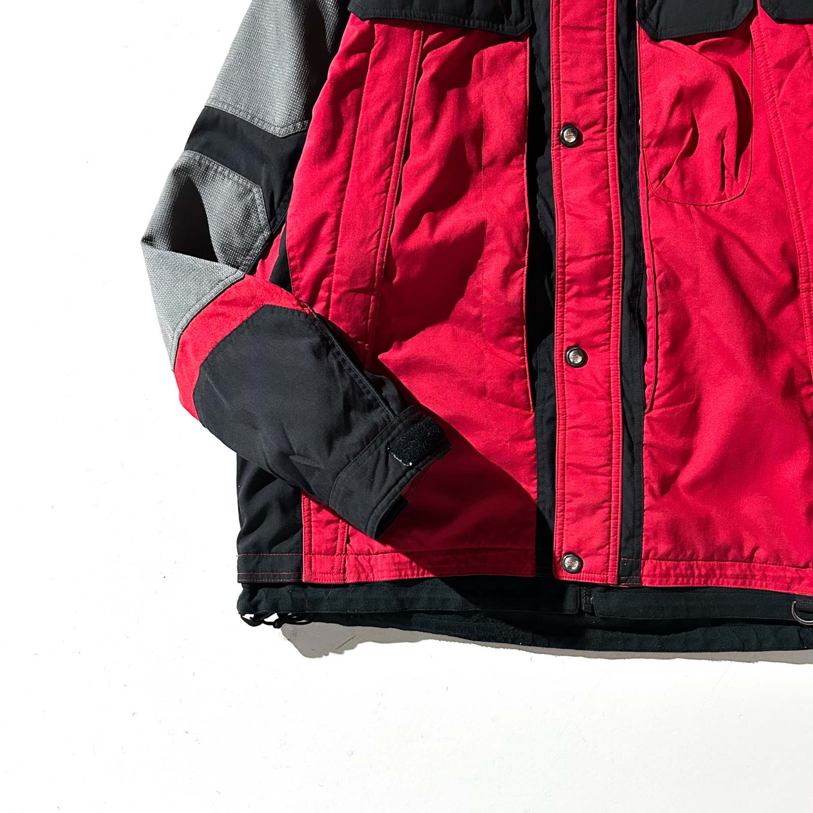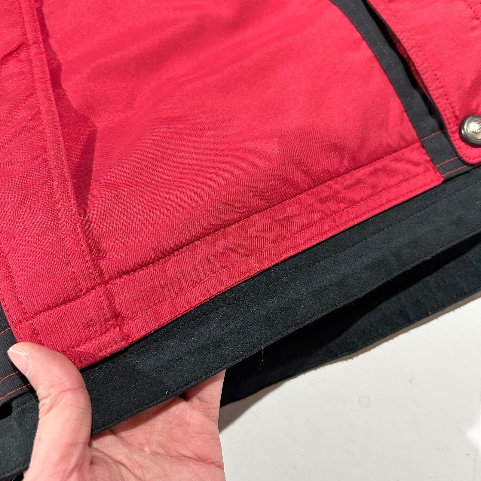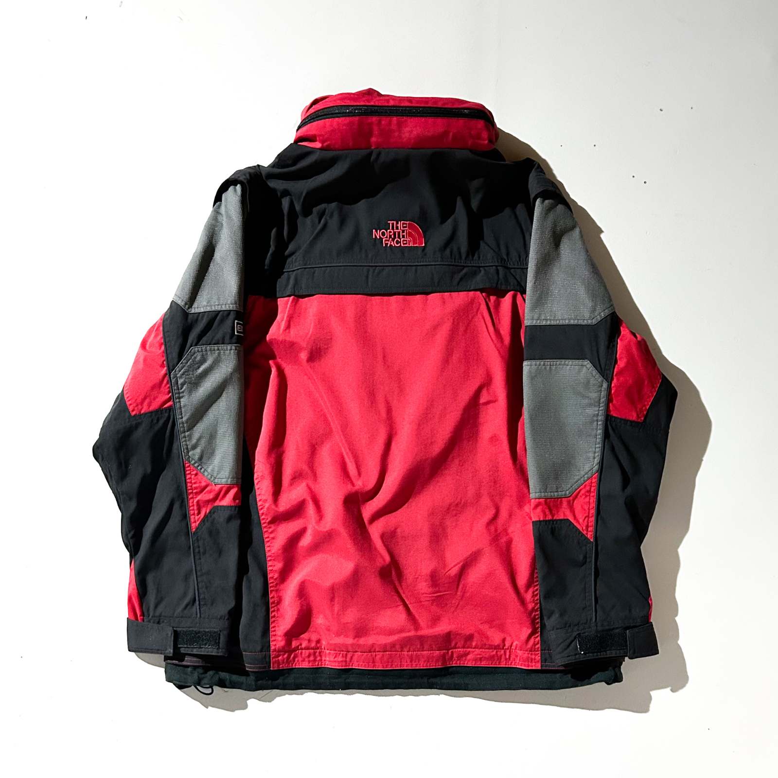 エクストリームスキーウェアとして開発されたEXTREME GEARシリーズは、タフなルックスと機能的なデザインで海外のヴィンテージギアコレクターから人気の高いシリーズ! シェルには激しい暴風雨耐える高耐水圧性と快適さを保つ透湿性を両立してくれる素材が使われています。各種多様なポケット、フード内蔵型の立ちの良い襟など90's全開のデザインが秀逸な1枚。 裾のドローコードは外気の侵入を防いでくれるため温かさを保ってくれる。 前身頃、後身頃の”THE NORTH FACE”ロゴは刺繍。