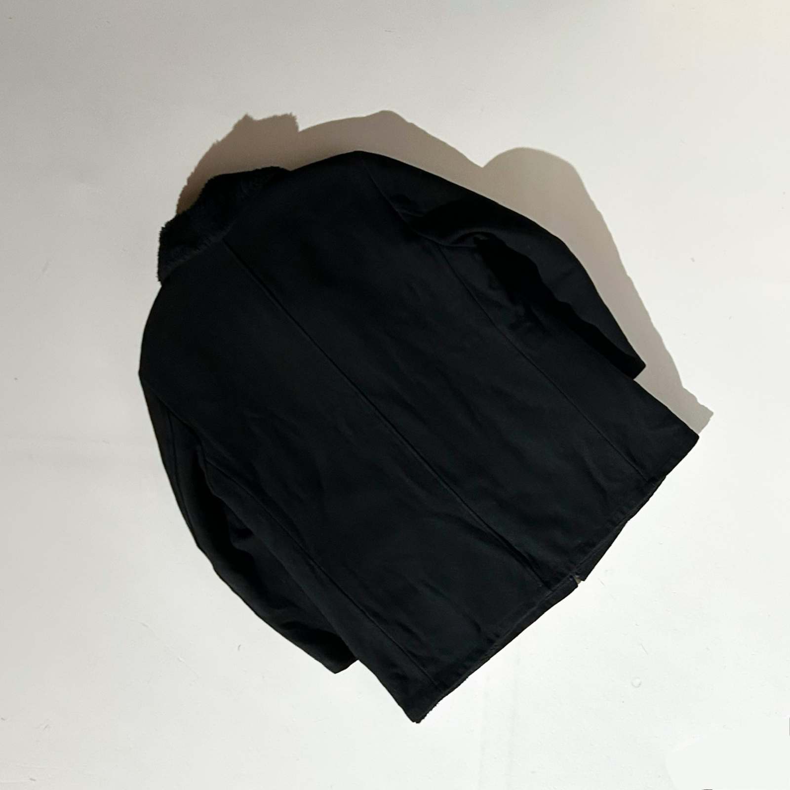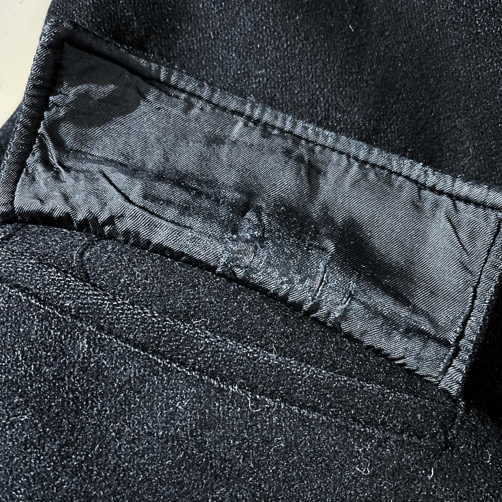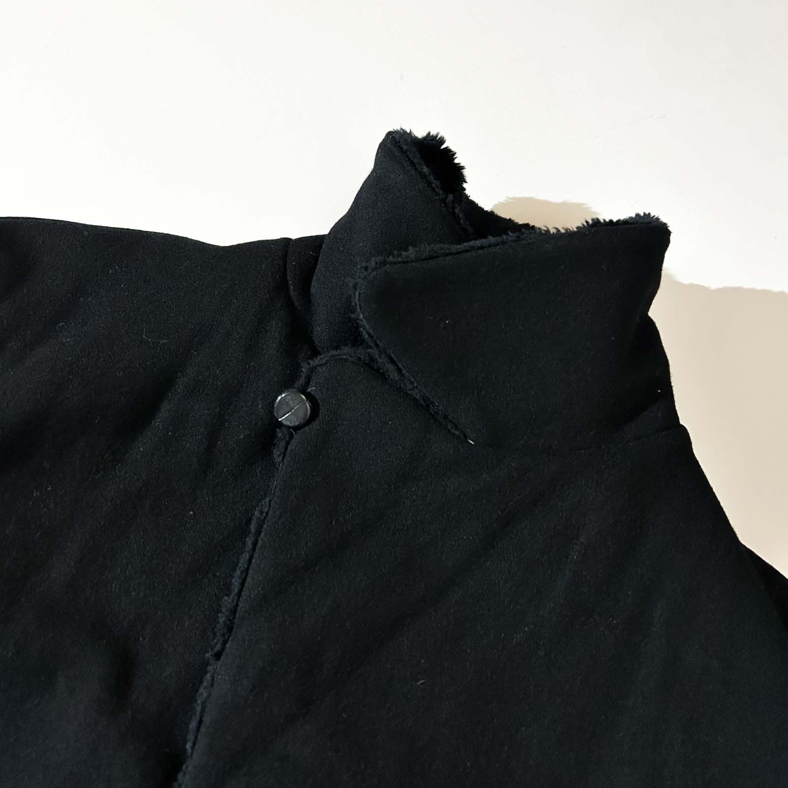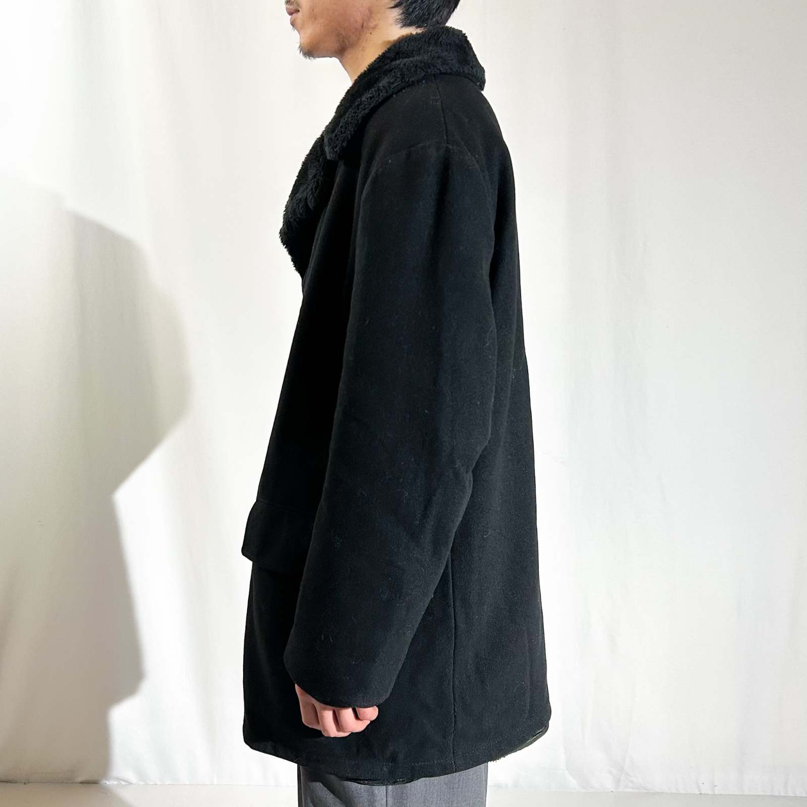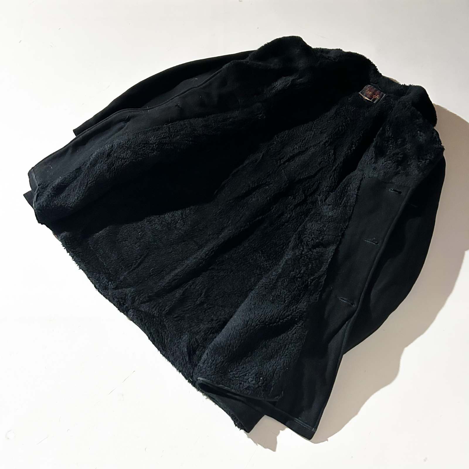 通称''不良''のコート。 首を大きく覆うようなショールカラーのボアとオールブラックの肉厚なウールボディ。 ブランドタグとユニオンチケットから恐らく60年代頃かと思われます。 裏もボア仕様となり保温性もある実用性あるデザイン。