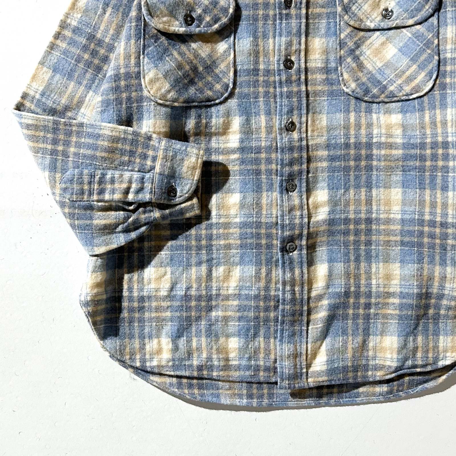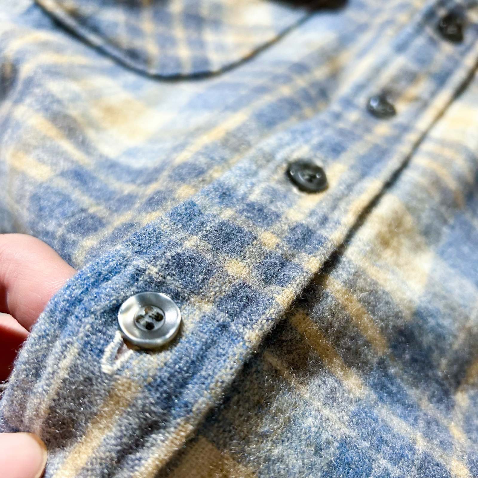去年は開催しなかった周年イベントですが、 今年は「せっかくだしちょっとやってみようか」という軽いノリで企画してみました。 “グリーフルオンラインストアらしい” ——ちょっと気になる、ちょっと良いものたちを中心に。 派手ではないけれど、「これ出るの珍しいね」と思えるアイテムを少し入荷しています。 こちらは70年代頃の〈PENDLETON(ペンドルトン)〉ウールシャツ。 水色とライトイエローの淡いトーンのチェックカラーが絶妙で、クラシックなのにどこか今っぽい配色です。 ウール素材の宿命である虫食いもなく、汚れ・ダメージともにゼロの奇跡的なコンディション。 多少の縮みはあるものの、着用には全く問題ありません。 古き良きアメリカンウールシャツの空気感をそのままに、 秋冬の主役として間違いない一着です。