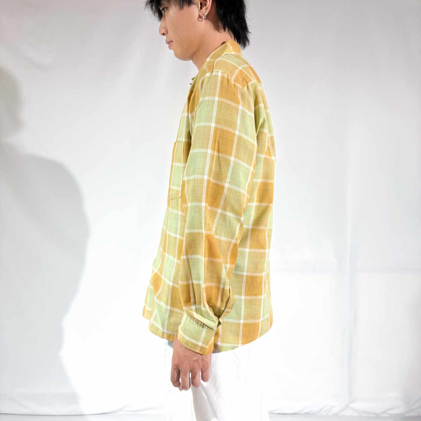 70年代 タウンクラフト 開襟 チェック 長袖シャツ ボックスシルエット