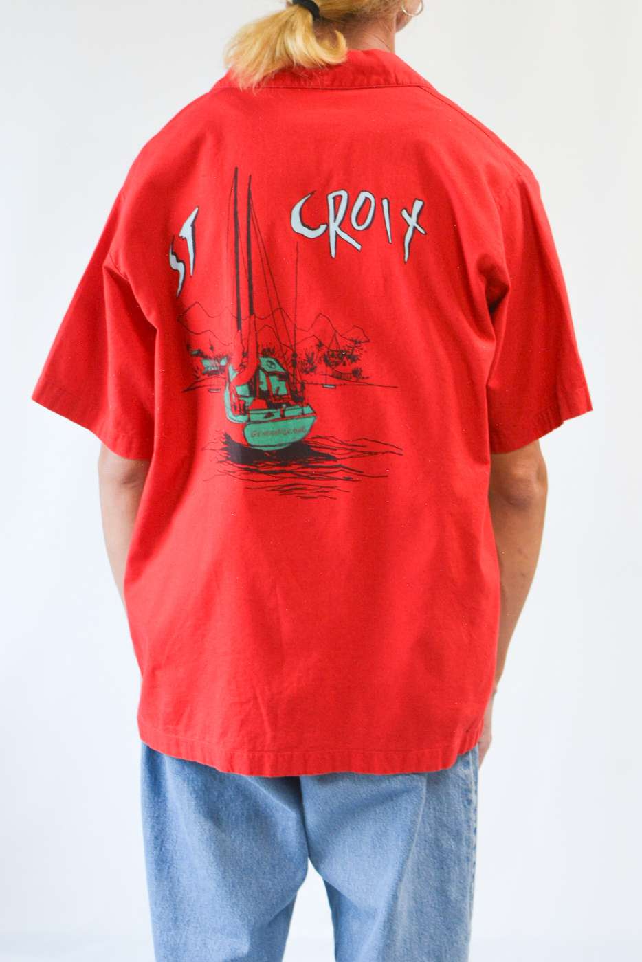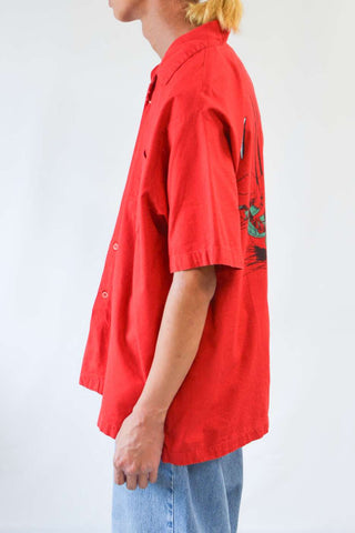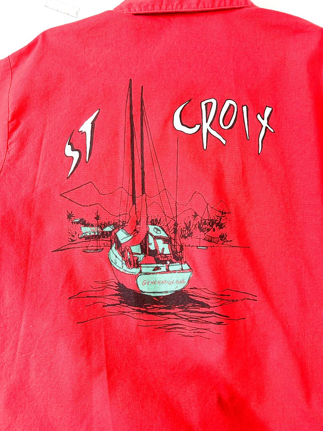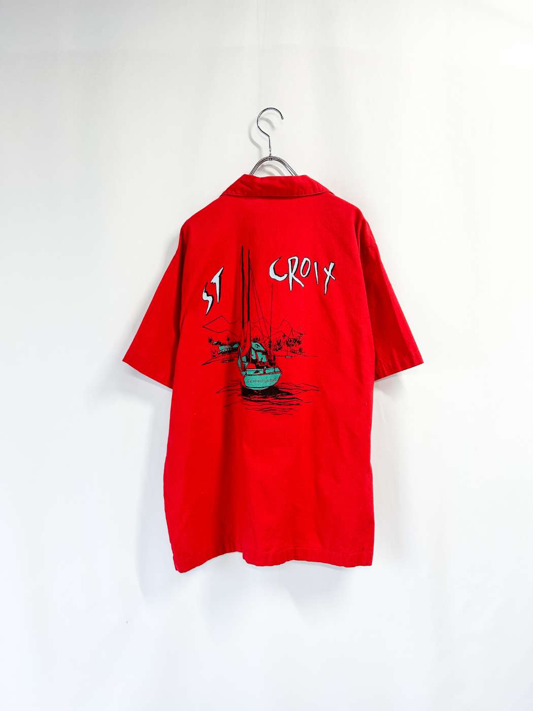 80年代 ジェネレーションワン オープンカラー 開襟 バックプリント 赤 レッド 半袖 シャツ