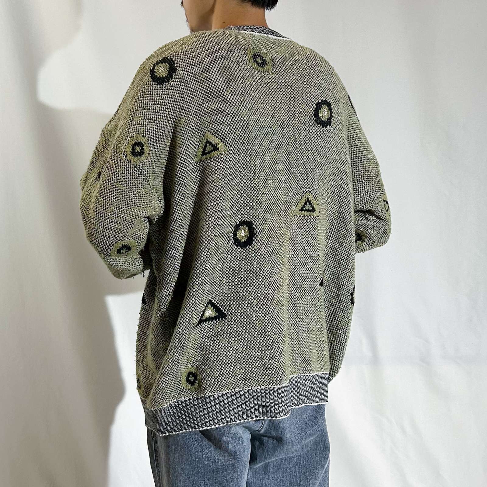幾何学模様 デザイン 綺麗め カーディガン アクリル