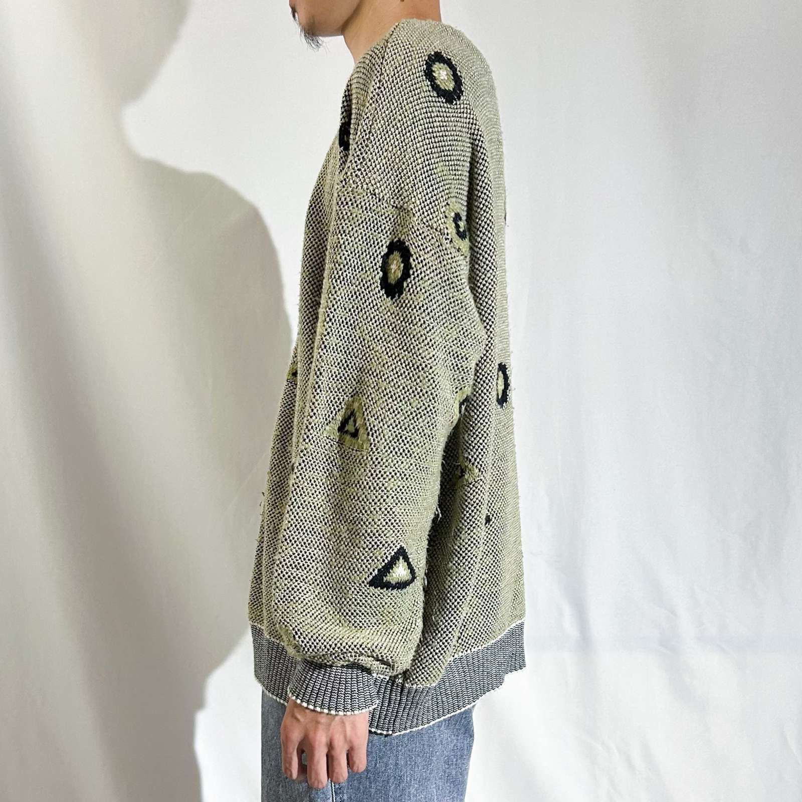 80's Da vinci 総柄 アクリル ニット カーディガン