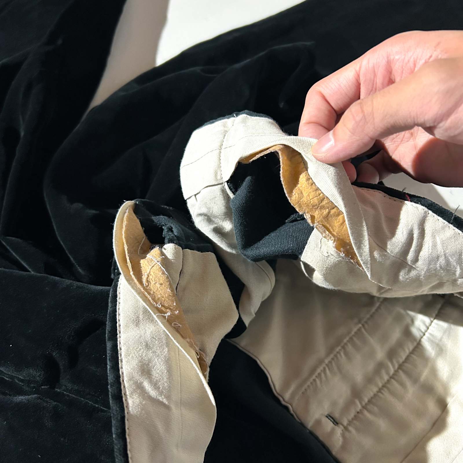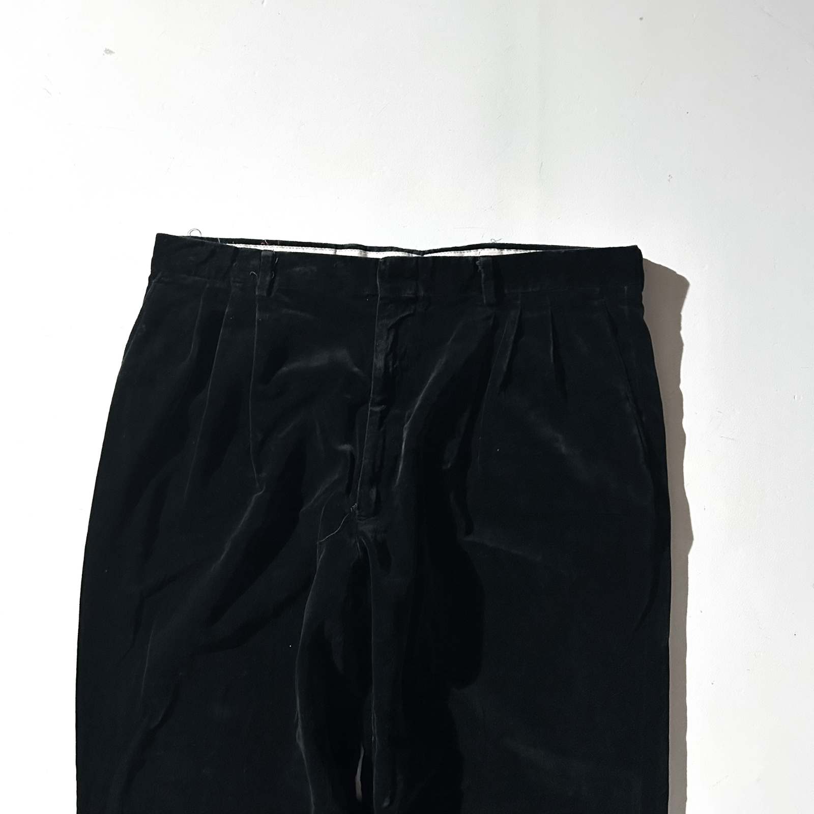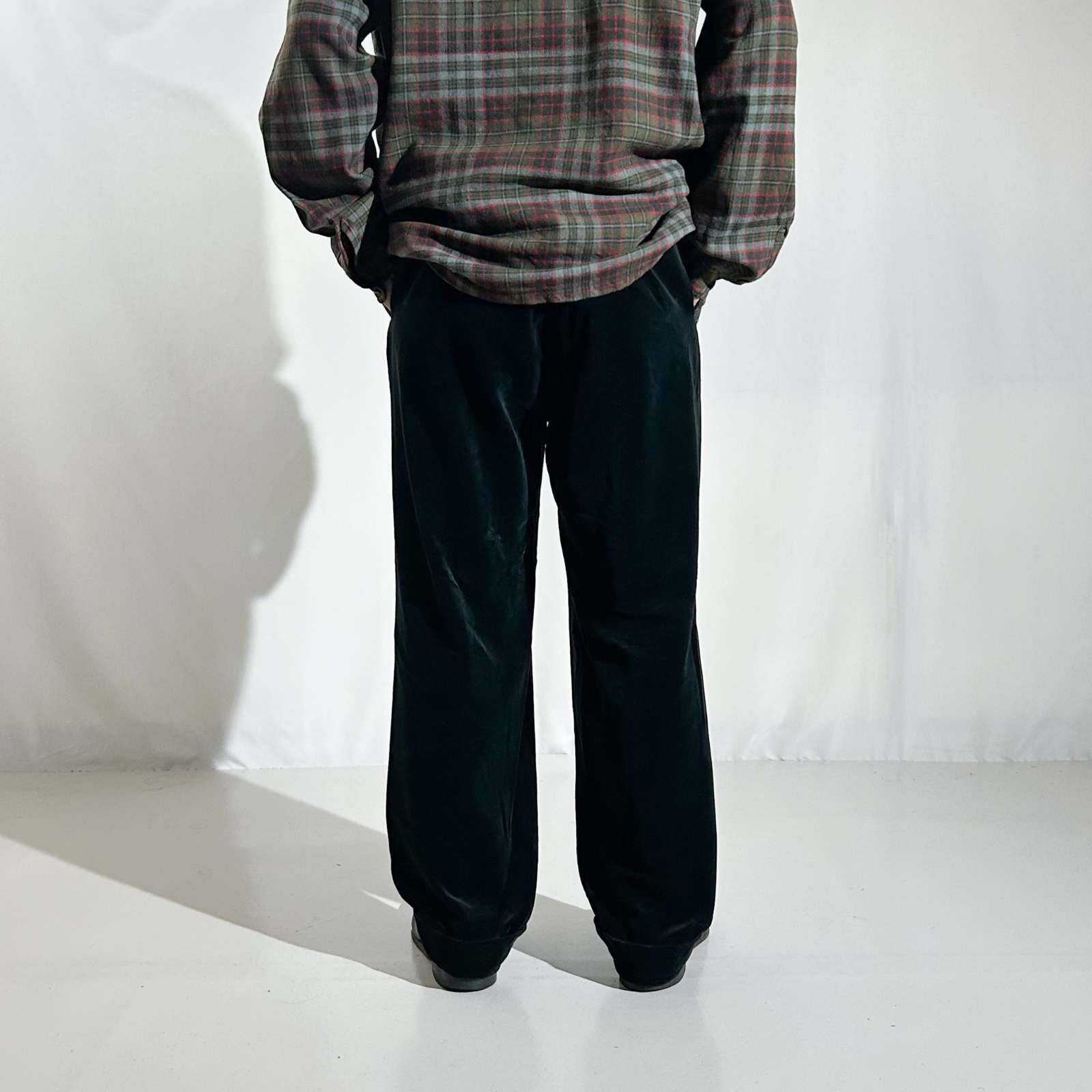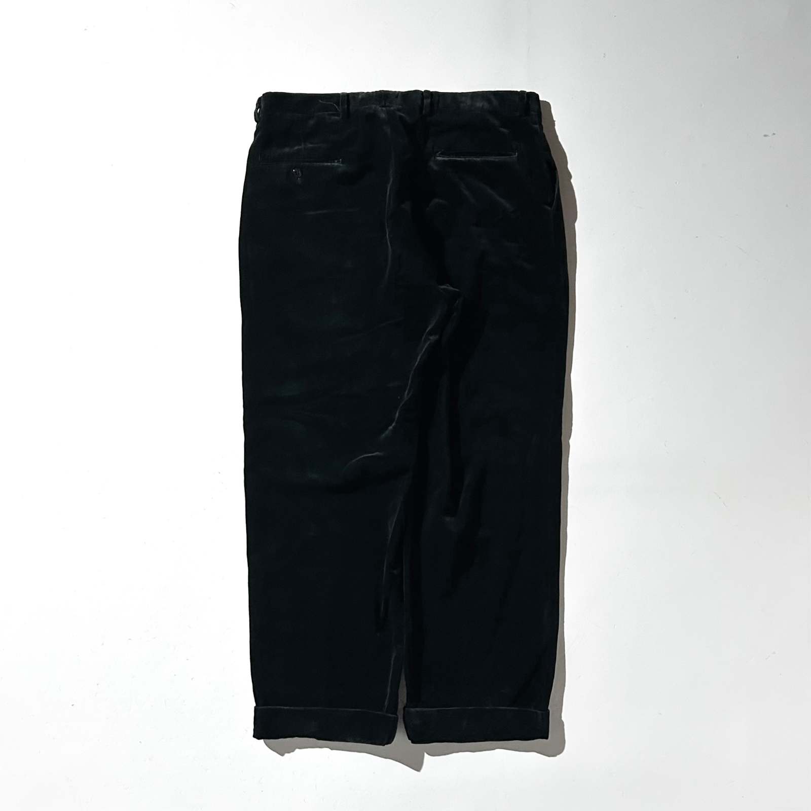 去年は開催しなかった周年イベントですが、 今年は「せっかくだしちょっとやってみようか」という軽いノリで企画してみました。 “グリーフルオンラインストアらしい” ——ちょっと気になる、ちょっと良いものたちを中心に。 派手ではないけれど、「これ出るの珍しいね」と思えるアイテムを少し仕込んでいます。 こちらはその中でも特に珍しい、ベロアの3タックスラックス。 古着市場でもなかなか出てこない「探すのが難しすぎる系」の一本。 程よい光沢とドレープ感があり、上品ながらもどこかヌケ感のある雰囲気に仕上がっています。 タックが入ることで腰回りに立体感が出て、シルエットも綺麗。 ニットやシャツ、レザーなど秋冬の素材感とも相性抜群です。