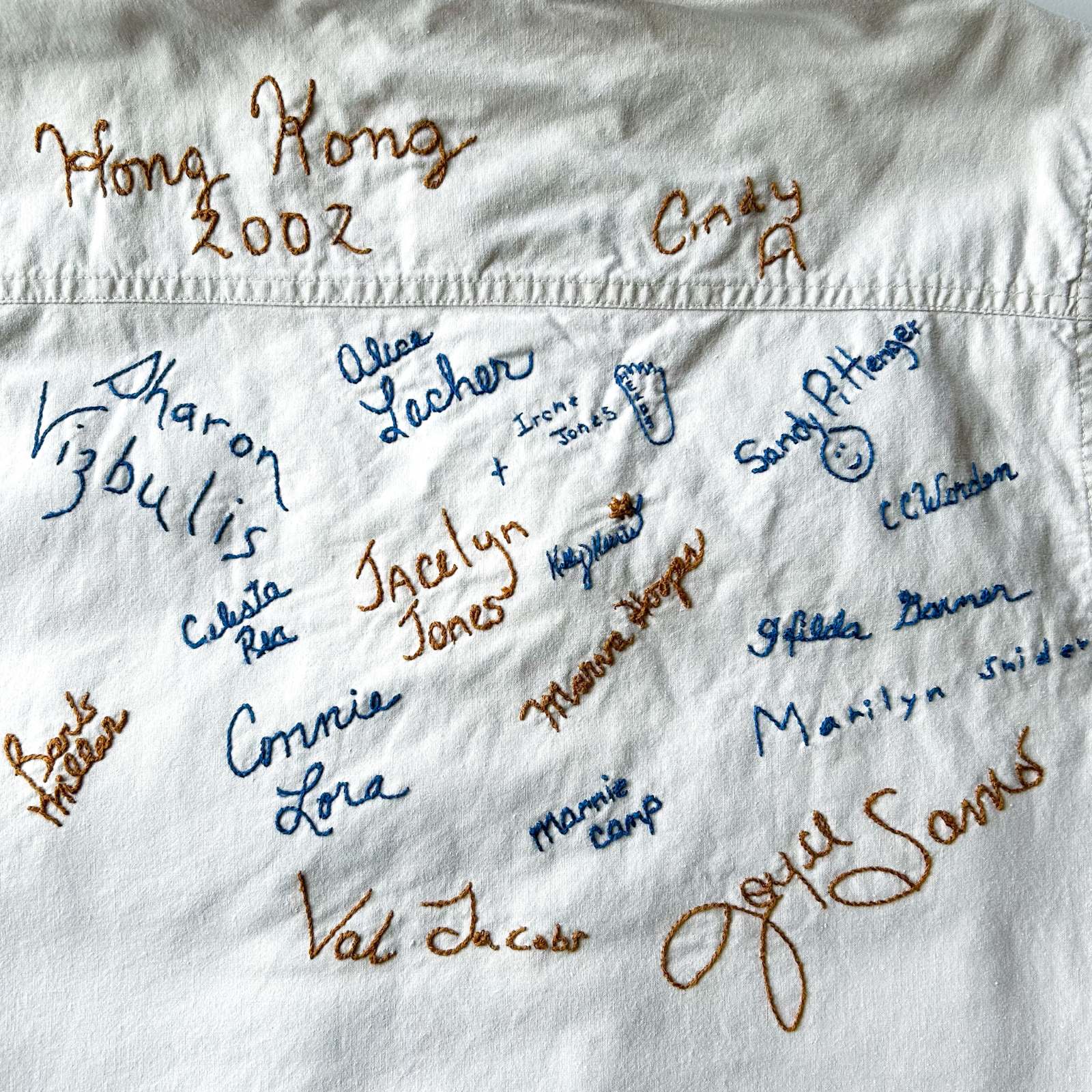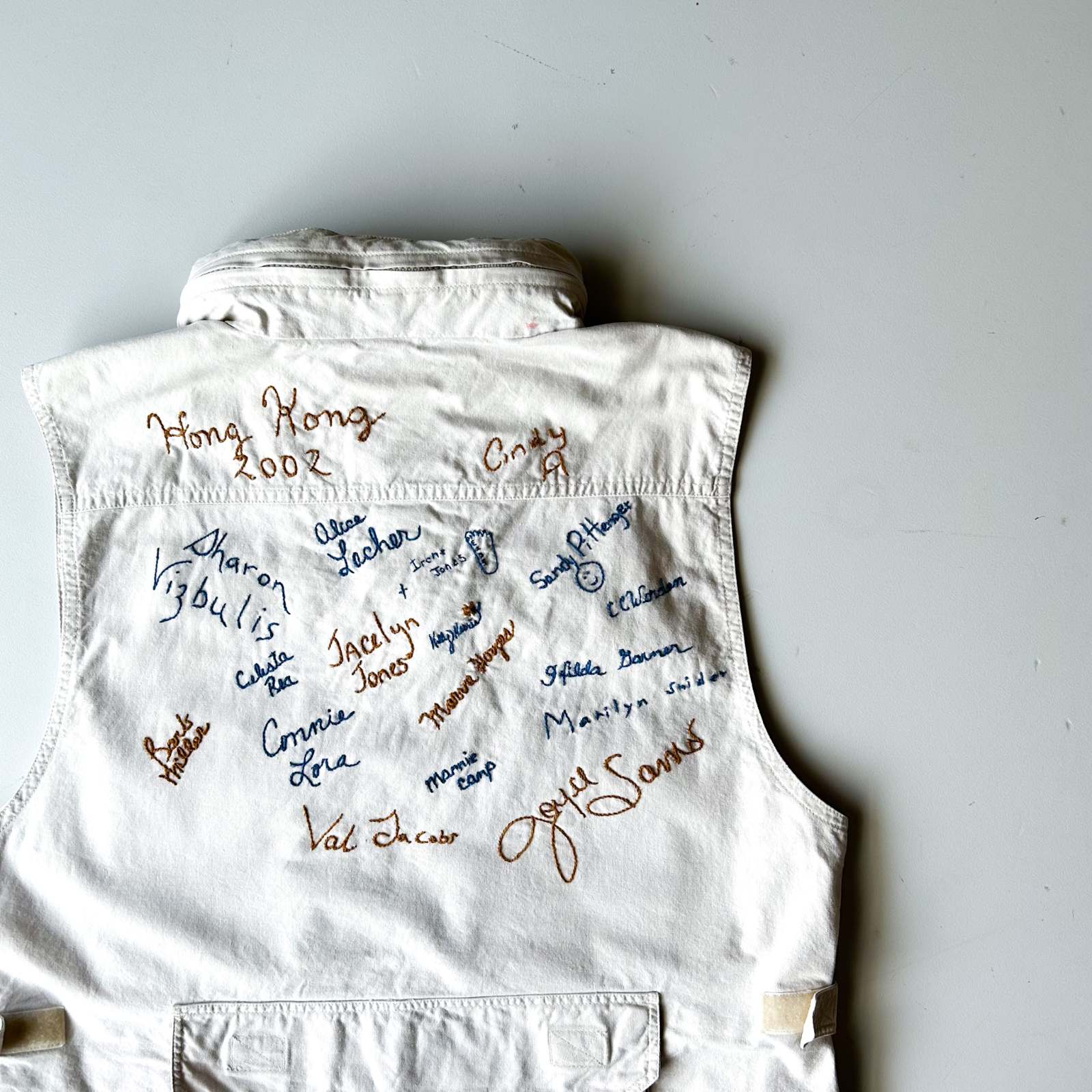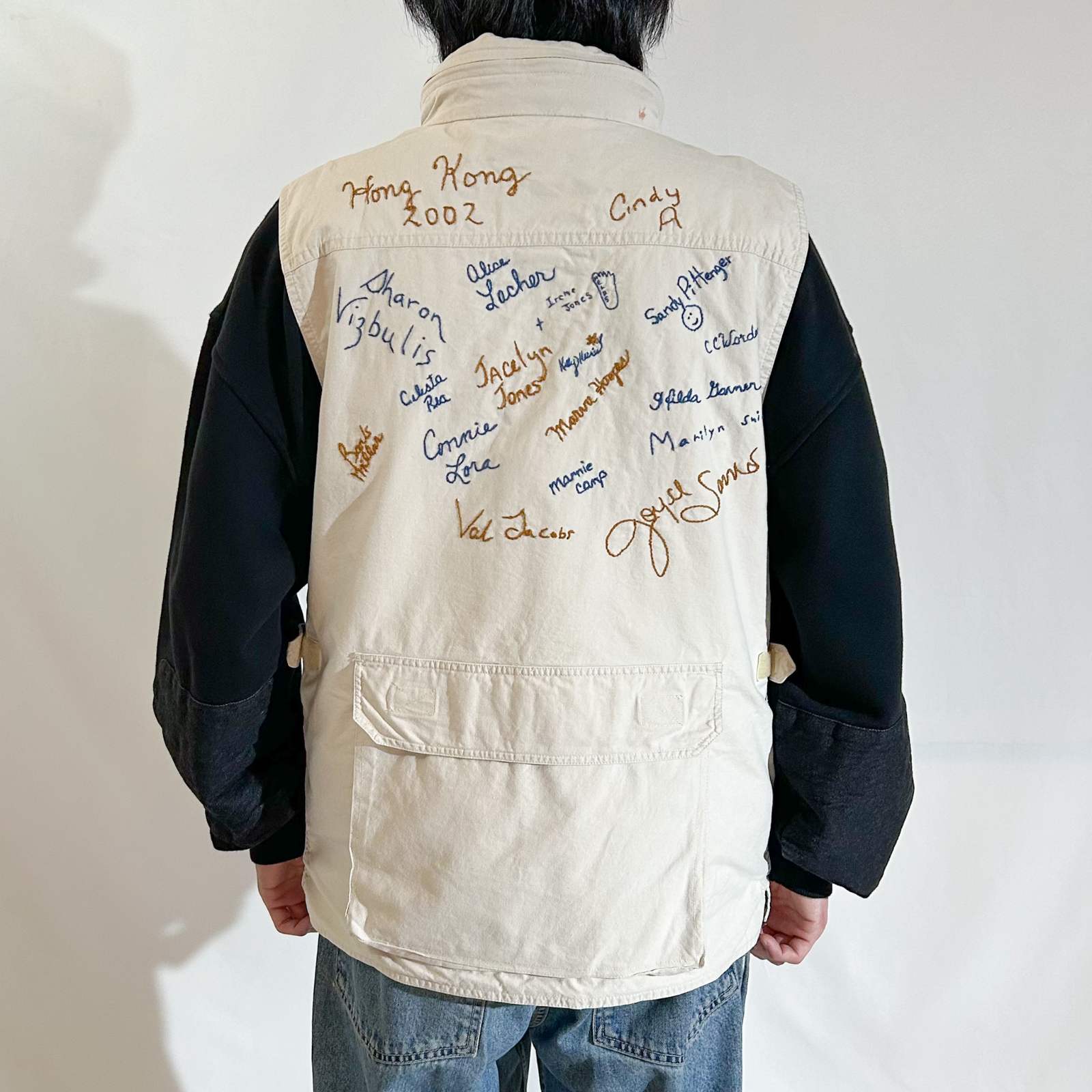 バナリパの定番サファリベスト。 スーベニア系の刺繍が施された一点物。2002年に友達やクラスメイトと香港に旅行に行った際に刺繍してもらったものですかね、いいですね〜。