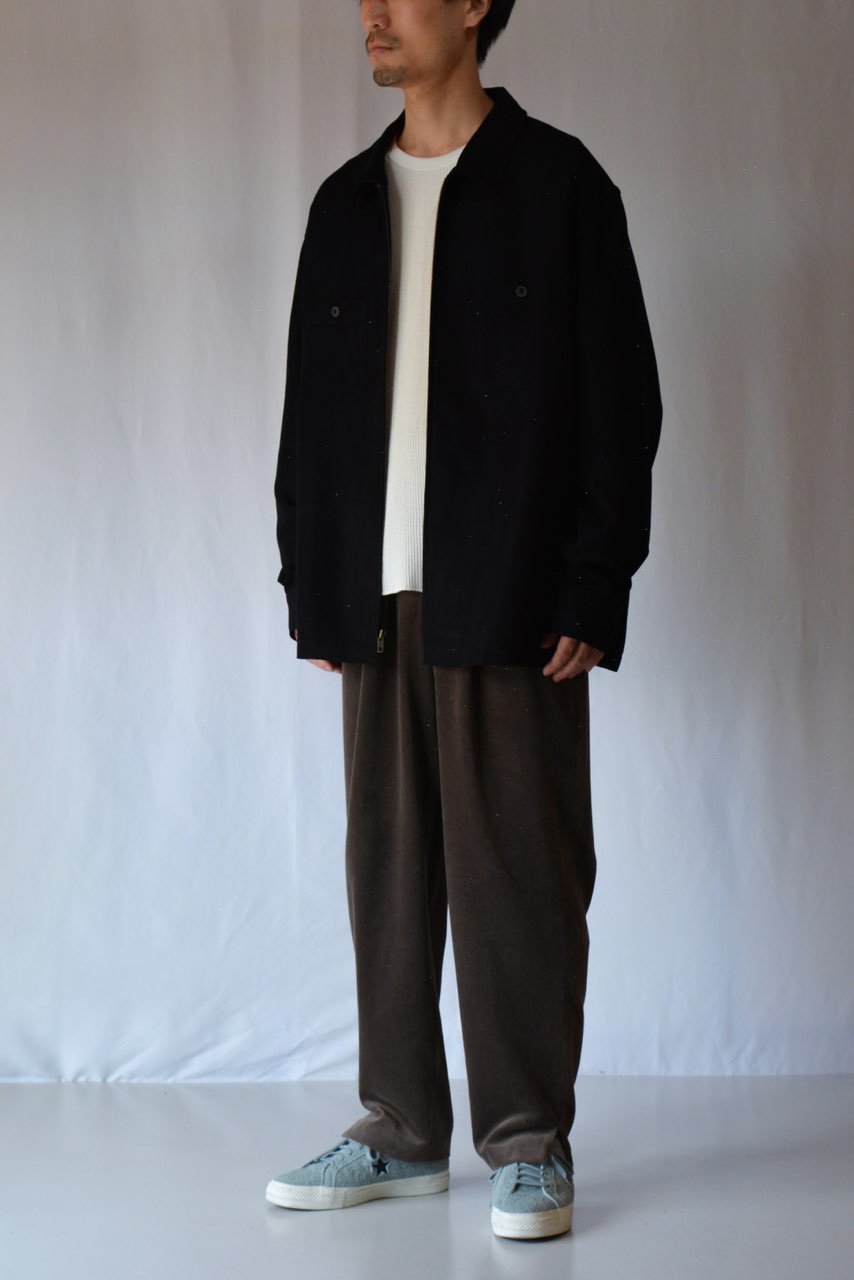AXISTのシャツジャケットです。 ハイブランドのような洗練されたシンプルなデザインです。 レーヨンを使用している為、高級感のあるトロンとした質感が魅力的ですね。 サイドにスリットが入っているため横からのシルエットが綺麗です。足を軽く見せてくれます。 スラックスやワイドパンツ等綺麗めアイテムと相性が良さそうですよ。