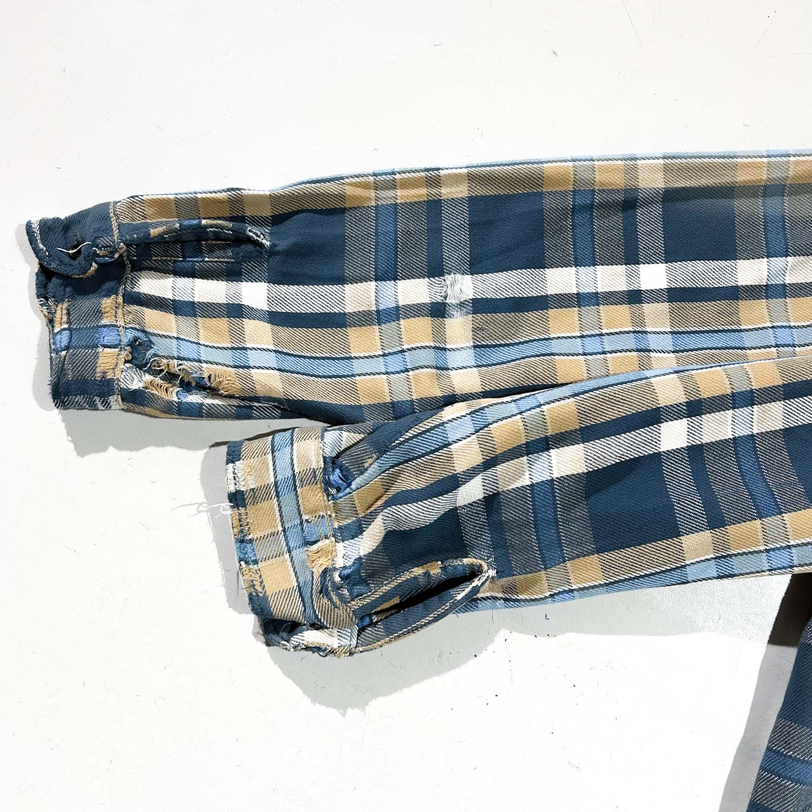 【Webスタッフ大鹿のおすすめ商品】 1980年代頃のFIVE BROTHER(ファイブブラザー)によるネルシャツ。 チェックシャツの名門から届いた、一点モノのリアルなボロ感が魅力の一枚です。 破れや擦れなど、グランジやフェード好きにはたまらない表情。 カラーリングは、黄×水色の“配色勝ち”なチェック柄。 インパクトがありながらもスタイリングには落とし込みやすく、デニム×VANSでThe アメカジ、スウェットパーカーの上にシャツジャケット感覚で羽織るなど、スタイル次第で多様な表情が楽しめます。