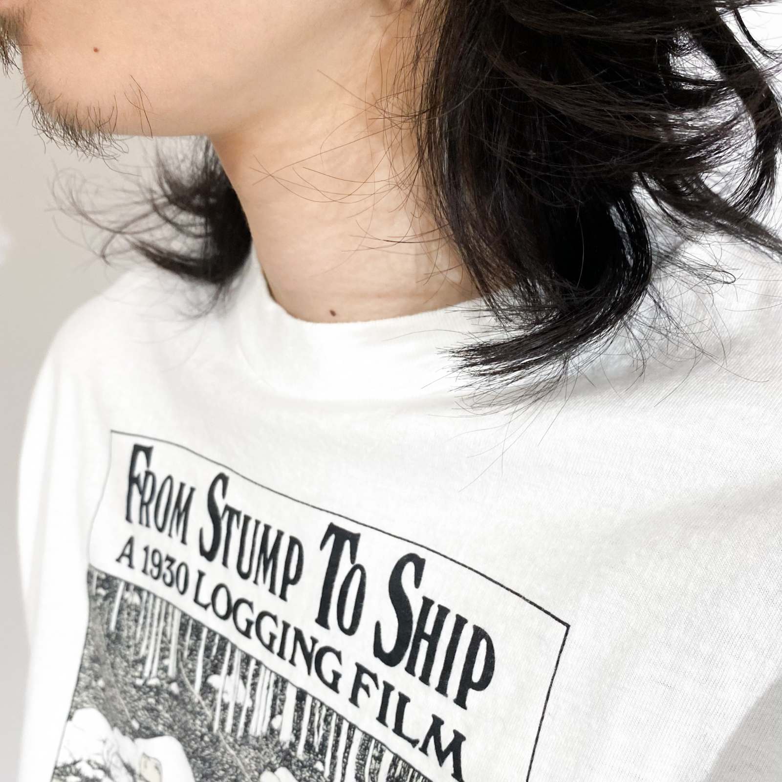 "FROM STUMP TO SHIP"のTシャツになります。1930年代のドキュメンタリー映画になります。アメカジの雰囲気あるイラストなので是非、デニムジャケットやデニムパンツと合わせていただきたいアイテムですね!