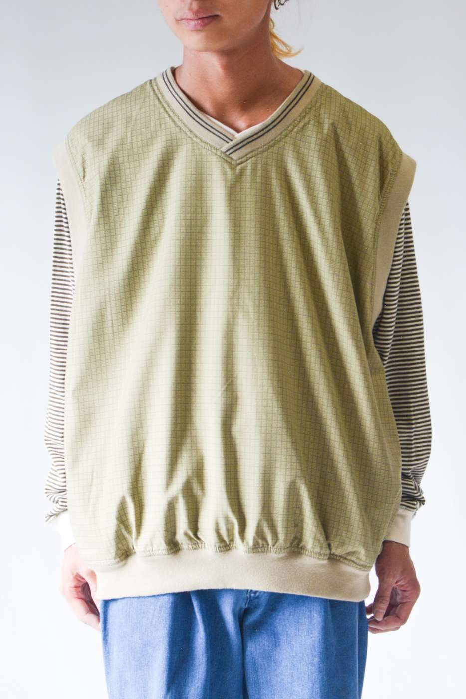 90's LA LOVING チェック ナイロン N/Sベスト