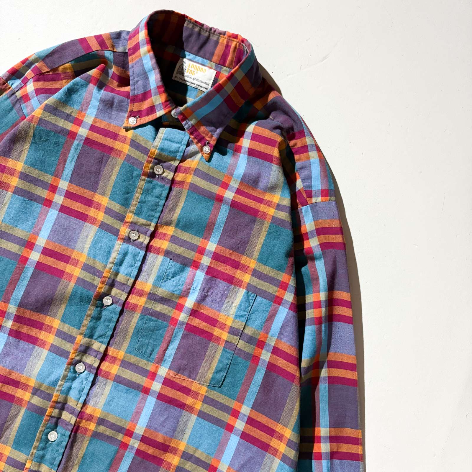 80's LONDON FOG ボタンダウン マドラスチェック L/Sシャツ