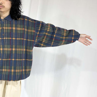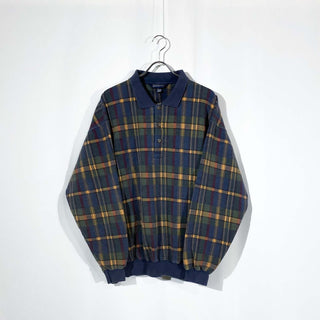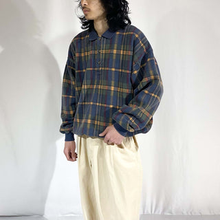 ランズエンドのスウェットになります。ポロシャツのようなハーフボタン仕様で襟付き。配色も大人な雰囲気ある色味とチェック柄なので◎、チノパンやワークパンツと合わせてアメカジスタイルを堪能したい1着。