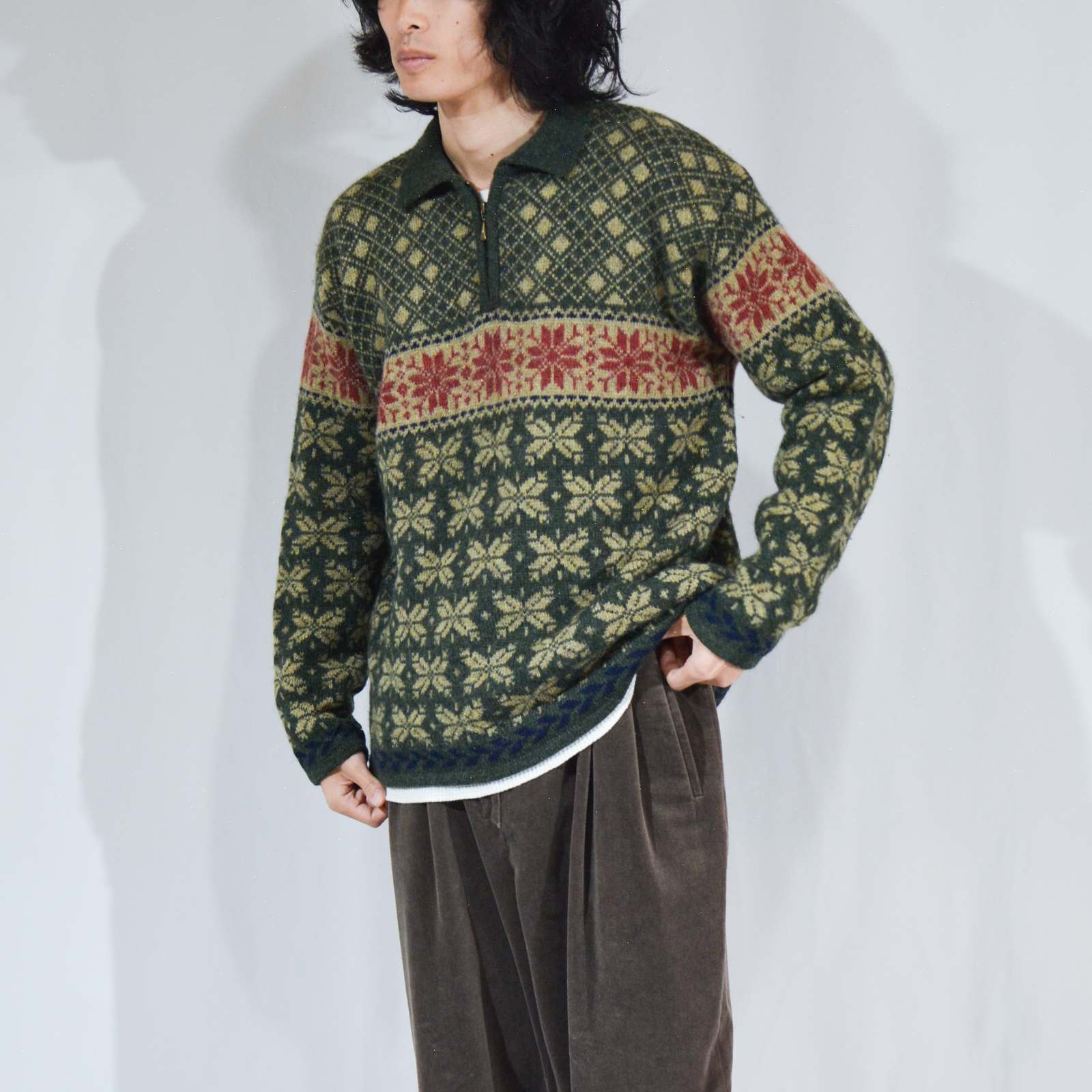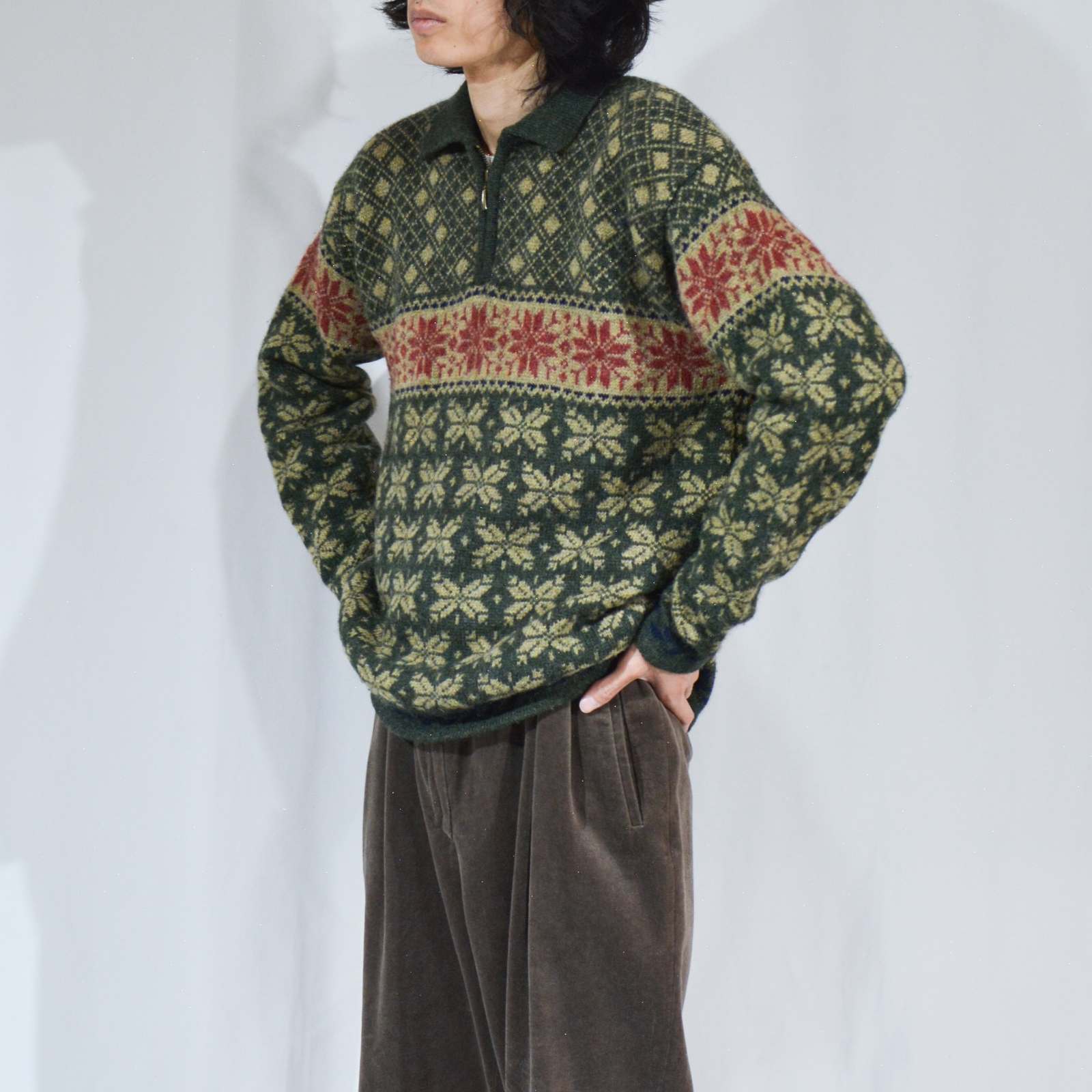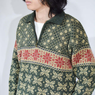 80's~ PAUL HARRIS DESIGN ハーフジップ ノルディック柄 ニット