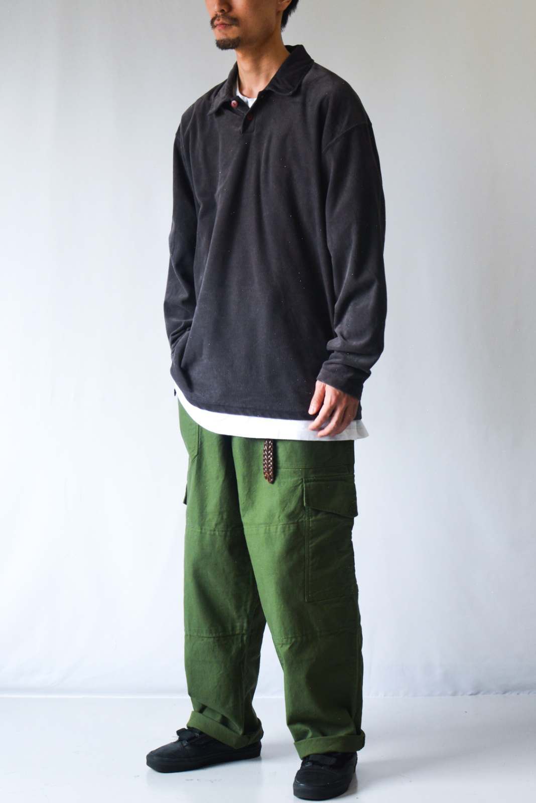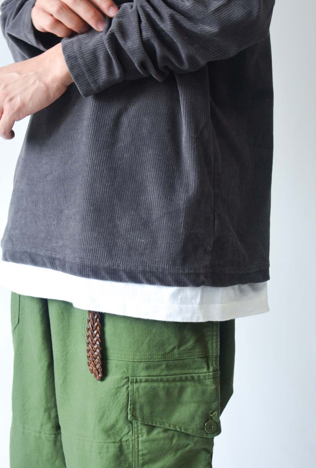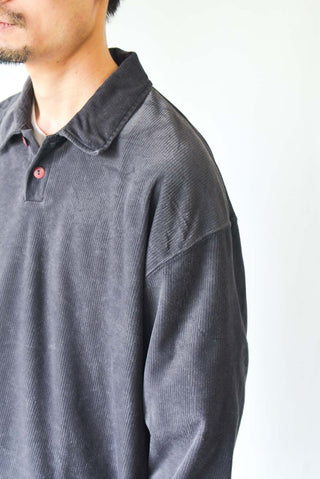 コーディロイのポロシャツになります。 ベロアのような光沢感と質感、大人の印象なポロシャツが上手くマッチしていて綺麗めアイテムと相性抜群です。 カットソーやハイネックのトップスをレイヤードして楽しむ事も可能なアイテムです。