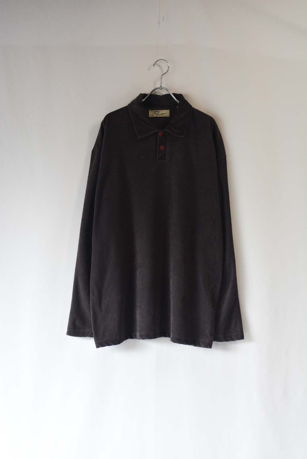 80年代 90年代 ベロア ポロシャツ グレー ボックスシルエット 長袖