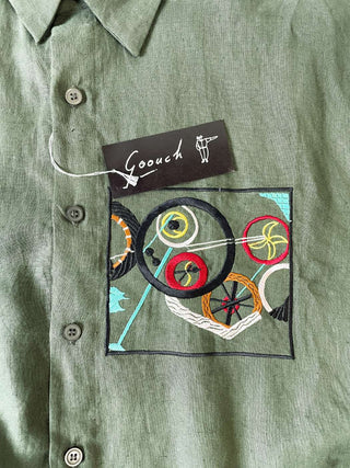 90's "デッドストック" GOOUCH アート 刺繍 リネン L/Sシャツ