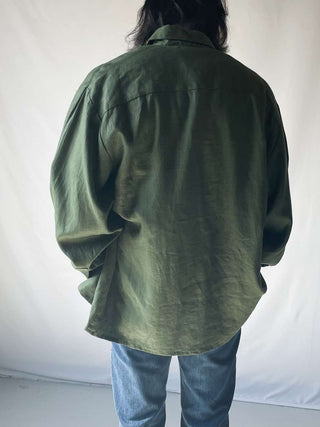 イギリス人のフォトグラファー"Alan Goouch"氏が1968年、カナダ・トロントで創業したブランド「GOOUCH」。80年代~90年代をピークに、2000年代初頭ごろブランドは終了。そんな「GOOUCH」のデッドストックです。カラーは"SAGE(セージ)"。深みのある優しい色合いグリーンに、フォトグラファーとしての感性が垣間見えるアートな刺繍が映える1枚です。