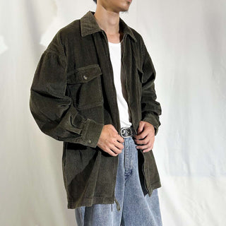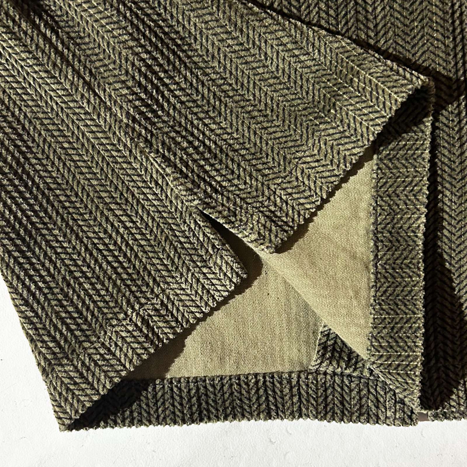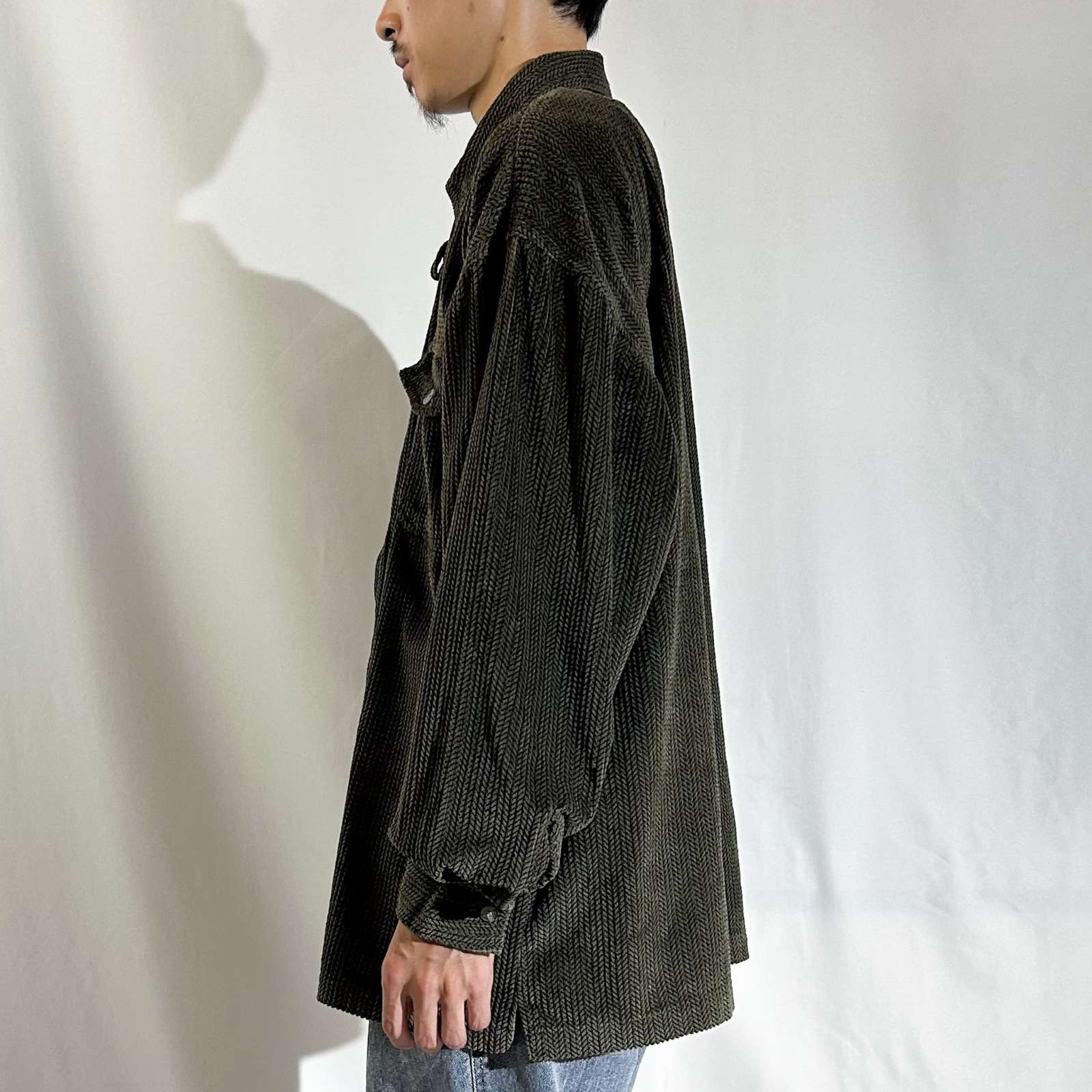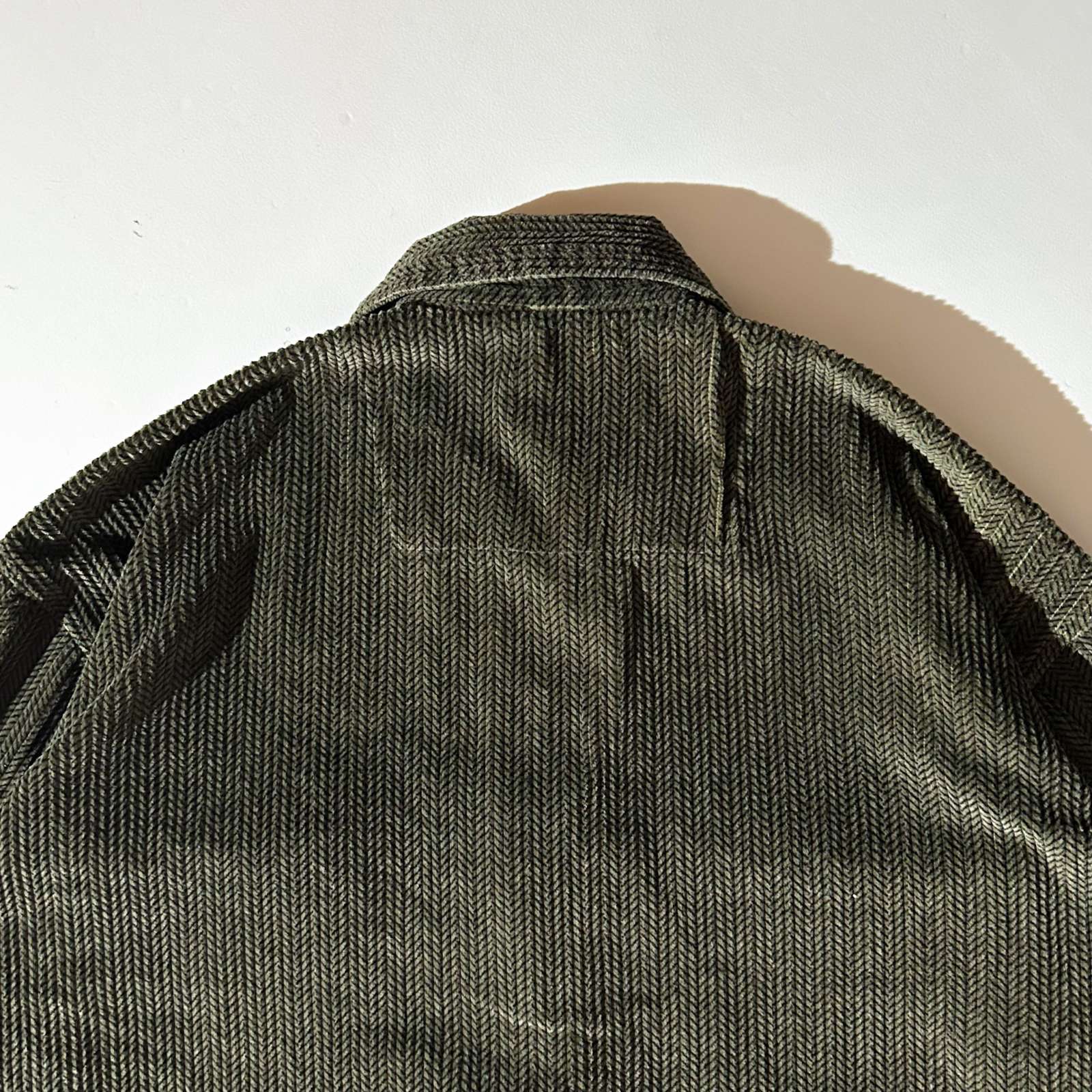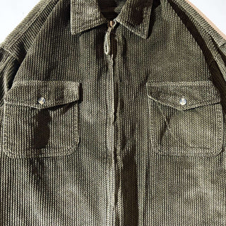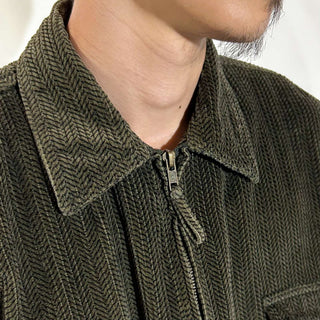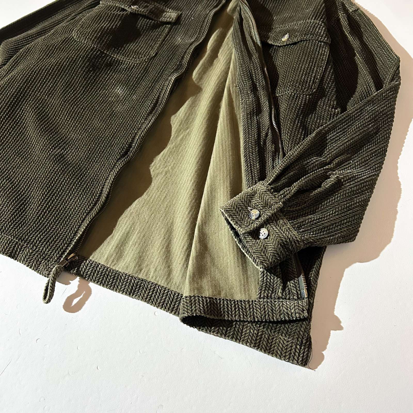 90年代頃のフルジップコーデュロイジャケットになります。光沢のある上質な深緑に黒のラインが入ったヘリンボーンコーデュロイになっていて、渋いです。