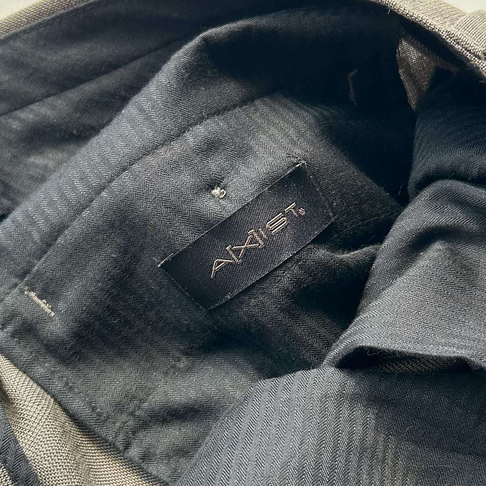 まず触れた瞬間に「これは入れたい」と思わせてくれた、抜群の生地感。ブランドを見る前から即決でピックした一着です。しっとりとした落ち感、滑らかなドレープ感が本当に素晴らしいです。 そして案の定、タグを確認すると〈AXIST〉。古着好きのあいだではじわじわと評価が高まっている、通好みのブランド。まだ市場ではそこまで知られていないものの、確かな作り込みと都会的なデザインで、これから注目度が上がってくること間違いなしです。 シルエットはゆったりとしていながらも、裾まわりはすっきりとまとまっていてバランス良し。上質な素材感を活かすなら、タンクトップや薄手のTシャツの上からサラッと羽織るのが◎。