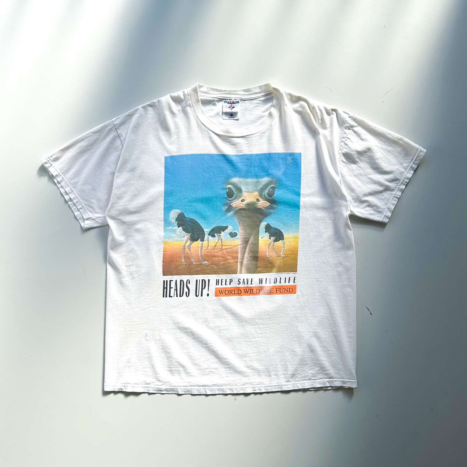 90's~00's JERZEES "HEADS UP!" ボロ ダチョウ アニマル プリント Tシャツ