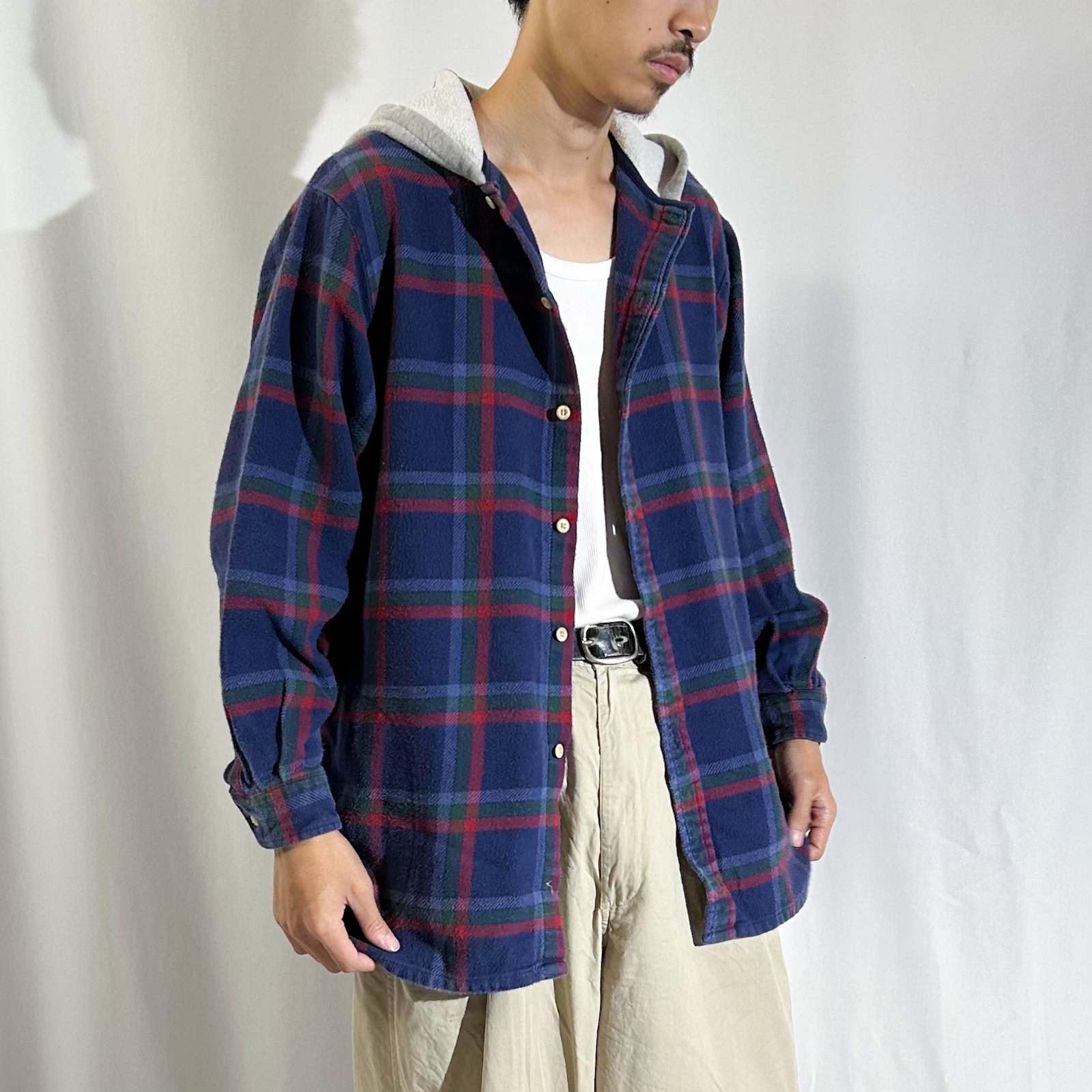 90's~00's L.L.Bean チェック フード L/Sネルシャツ