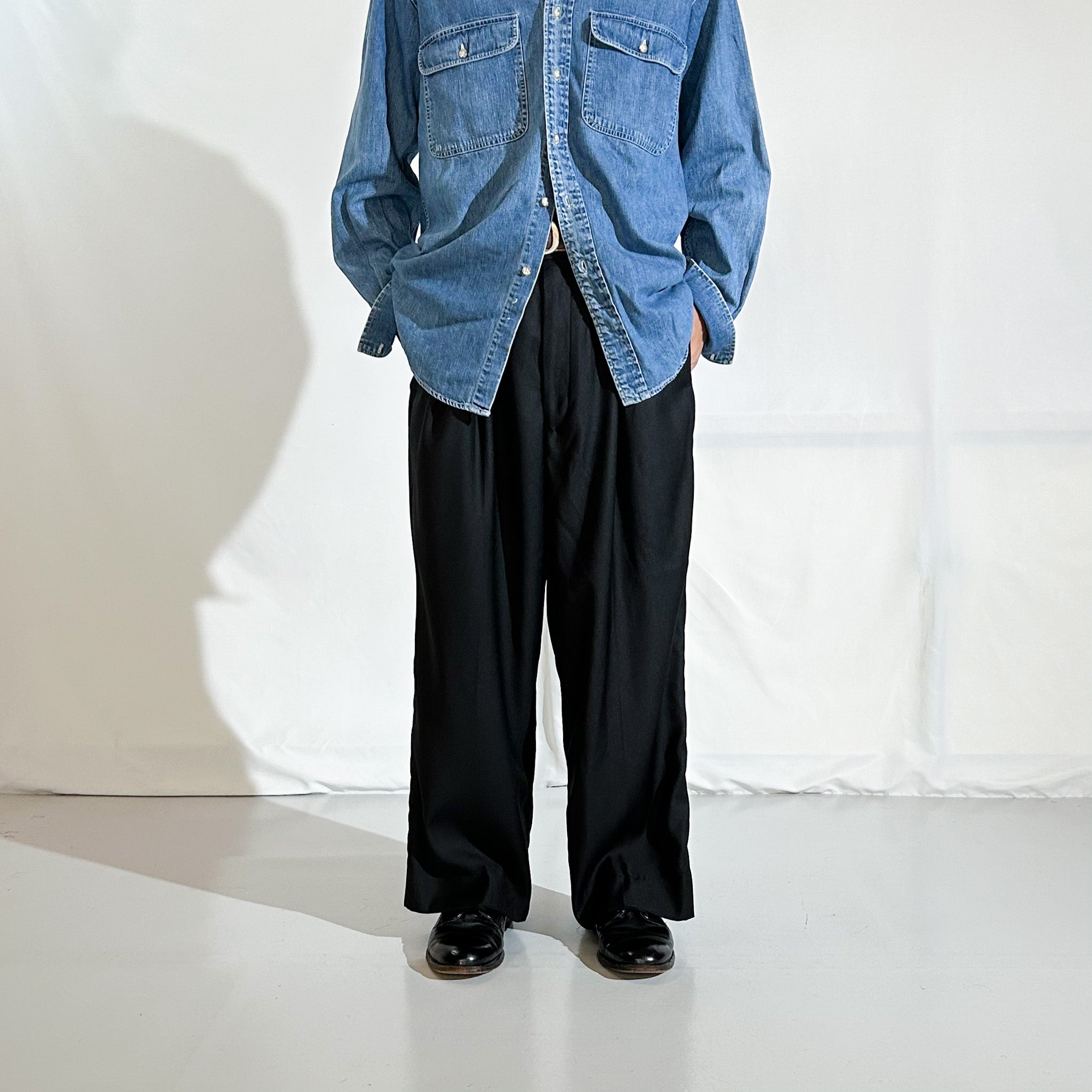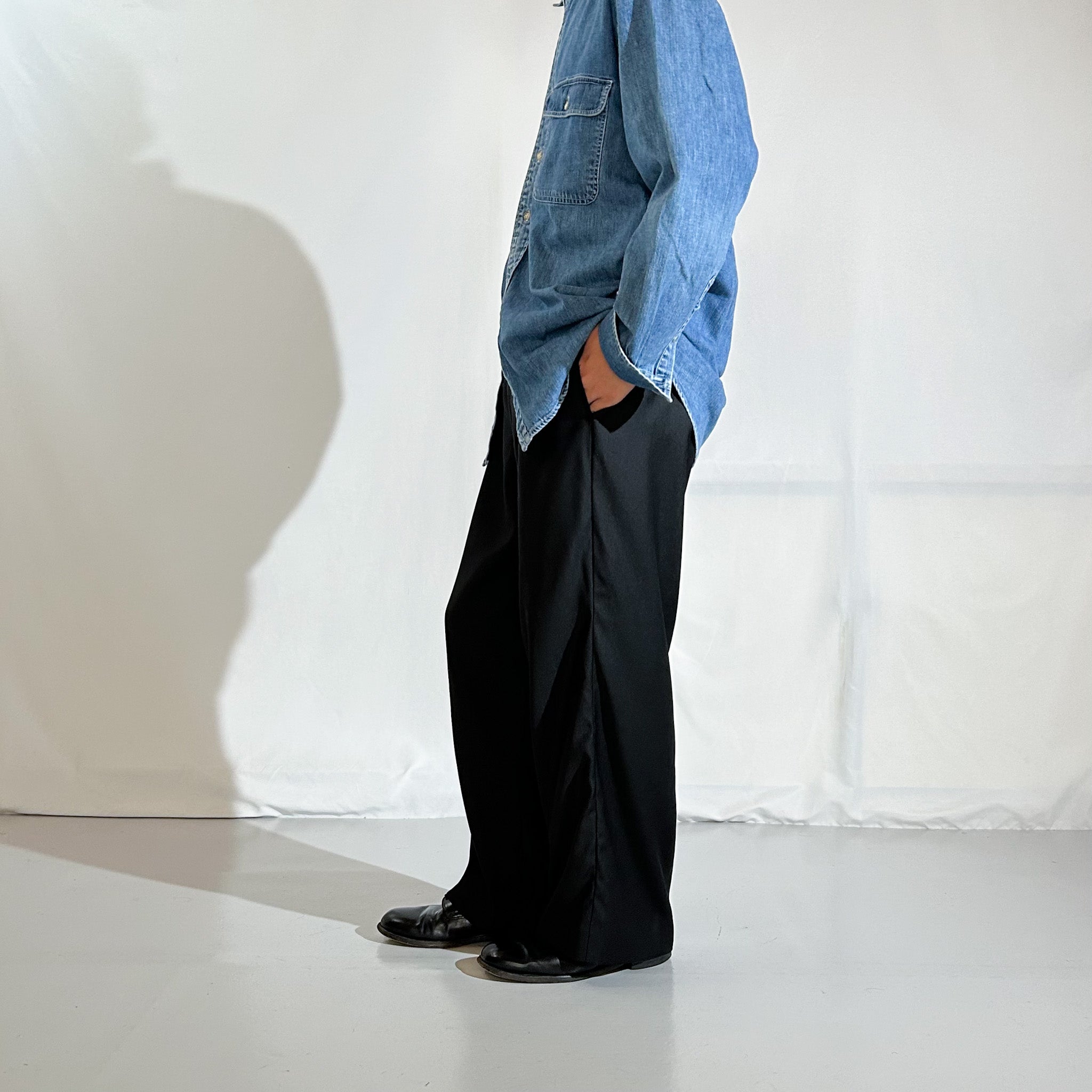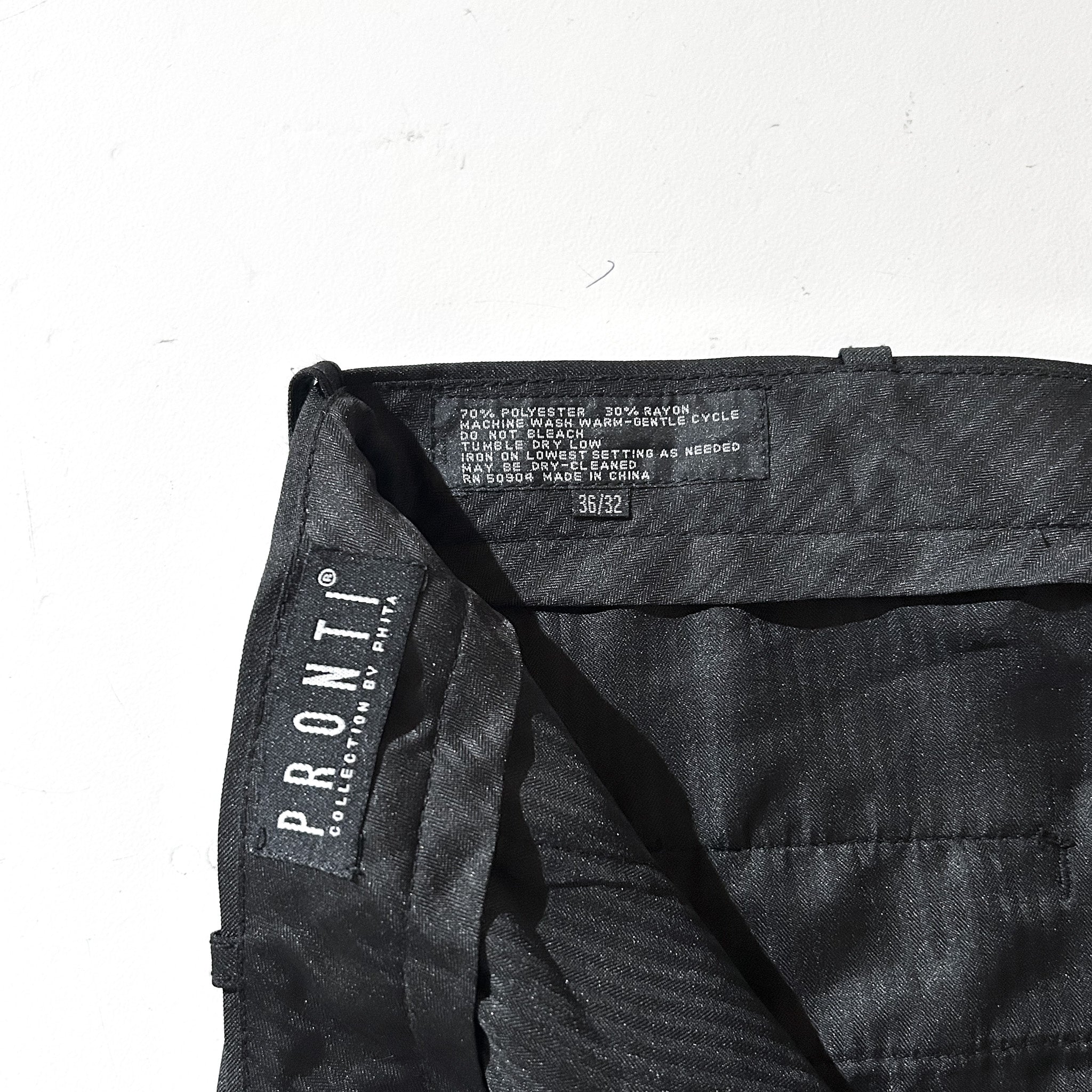 90's~00's PRONTI レーヨン×ポリエステル ブラック 2タック ワイド ギャング スラックス