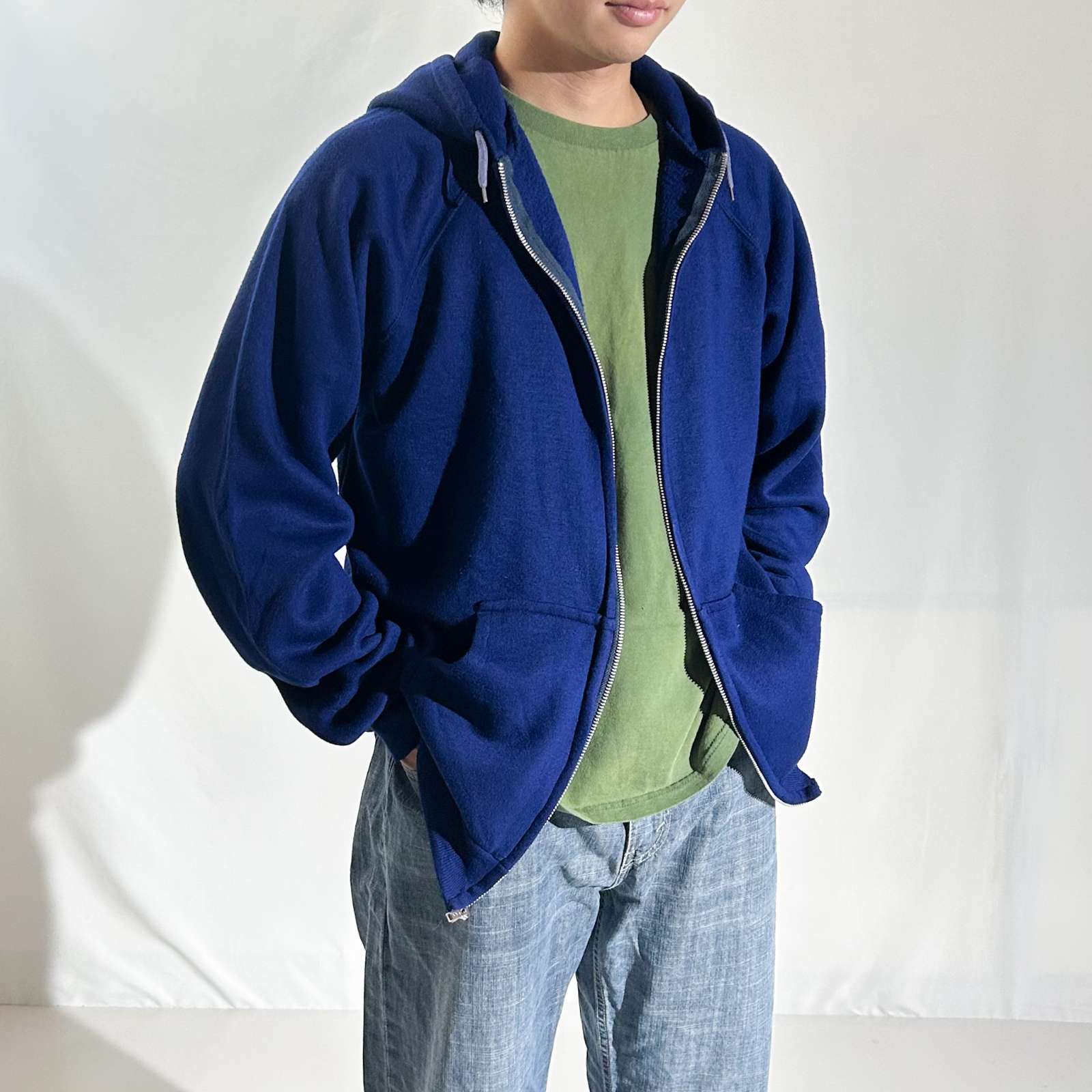 フルジップ スウェット フーディー 青