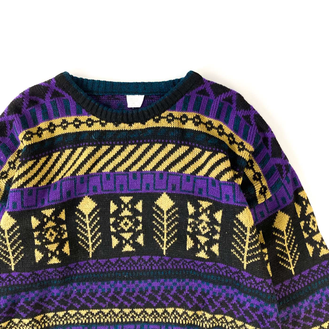 90's "made in ITALY" アクリル×ウール 総柄ニットセーター
