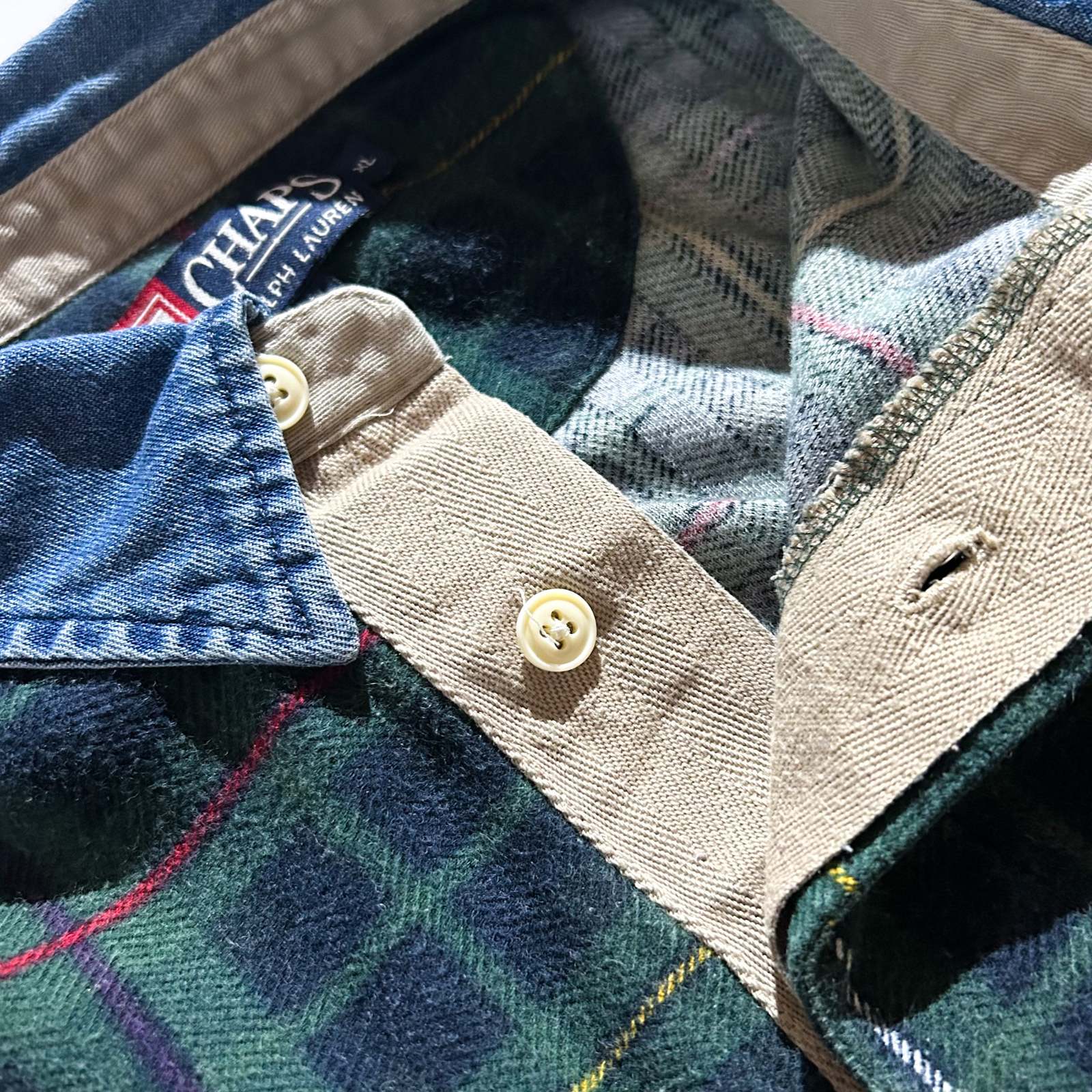 チャップスにラルフが付くとなんだかちょっぴり嬉しい…。2000年代にはラルフローレンとのライセンス契約が終了し、チャップスのみの表記になってしまうんですよね。周りには分からないこだわりのあるタグとアメリカのブランドで英国の雰囲気を感じることの出来るタータンチェック柄というチグハグさが個人的に好きですね〜。