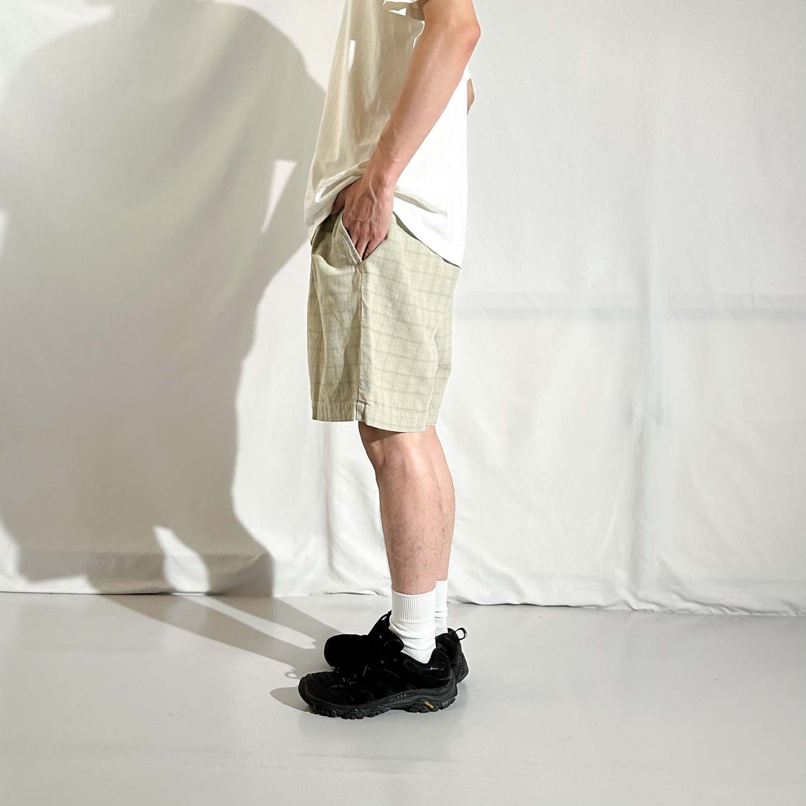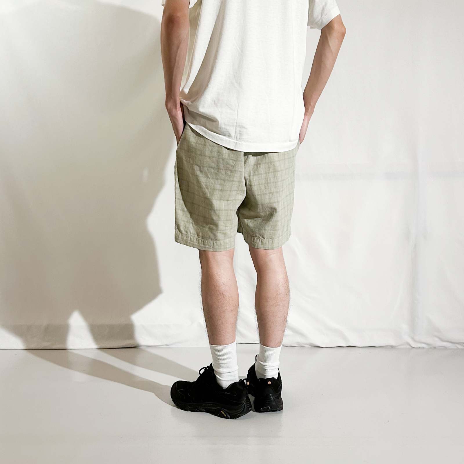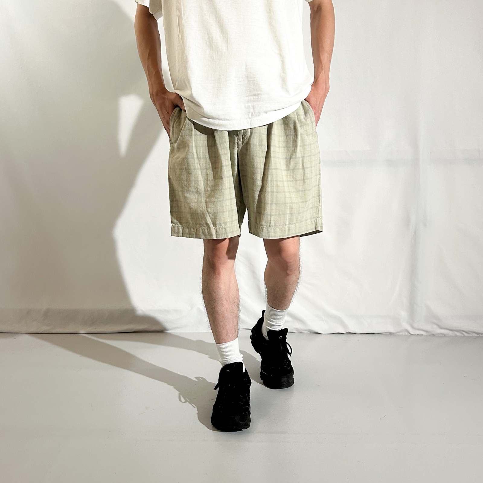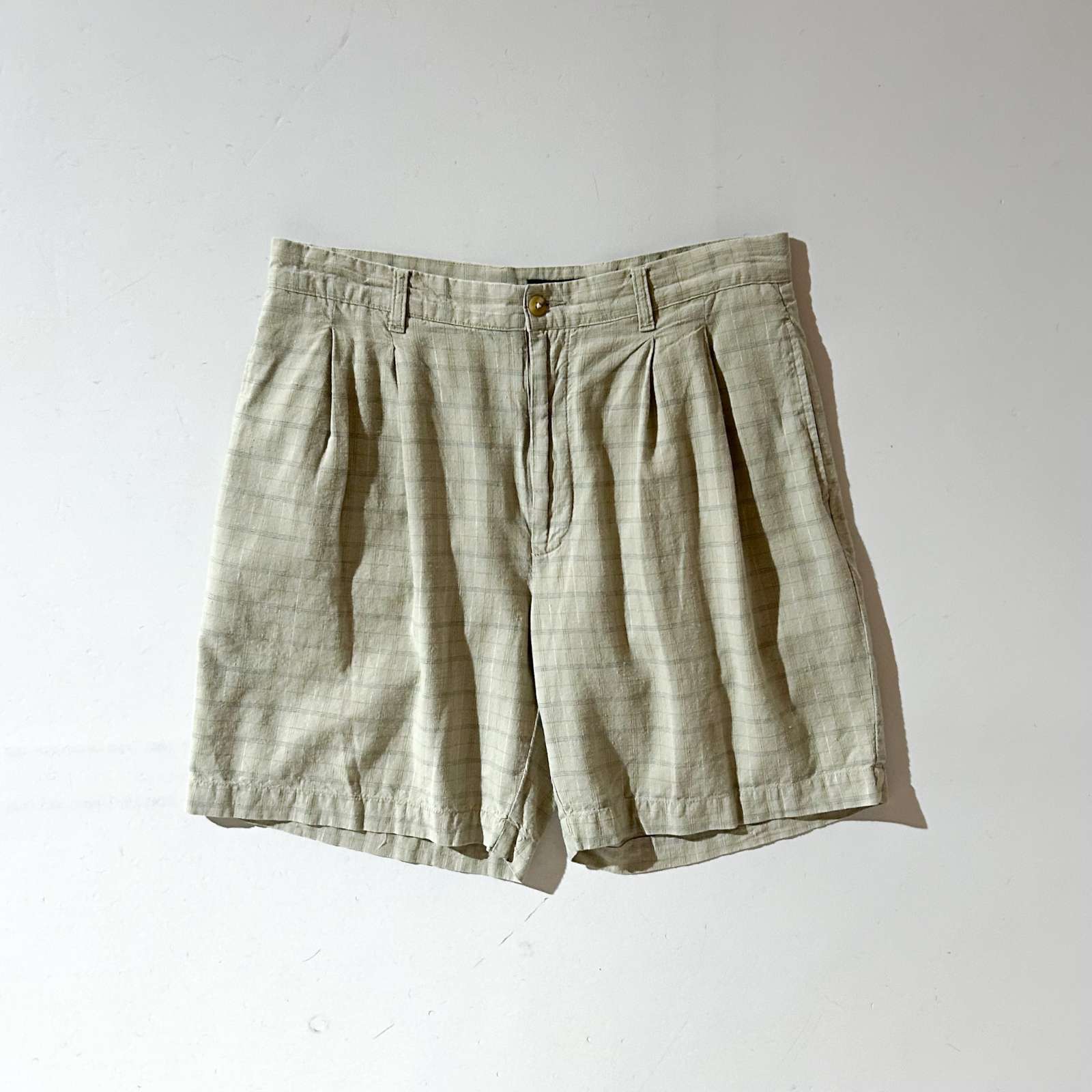 90's CLUB ROOM リネン×コットン チェック 2タック スラックス ショーツ