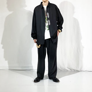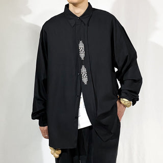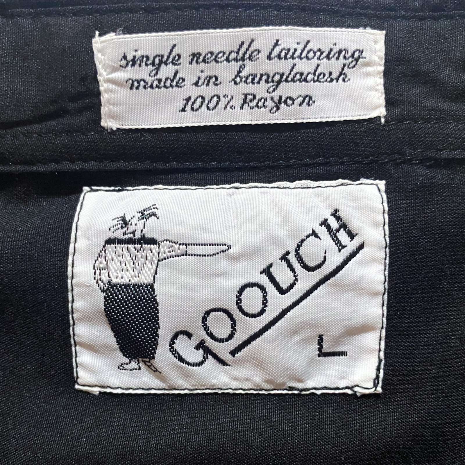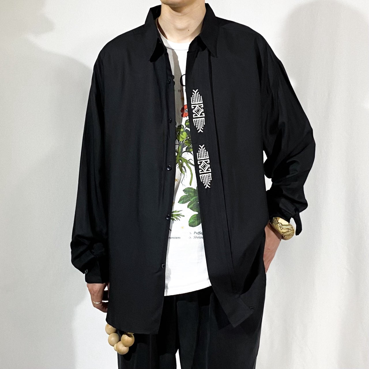 90's "dead stock" GOOUCH アート刺繡 比翼 L/Sシャツ(ブラック)