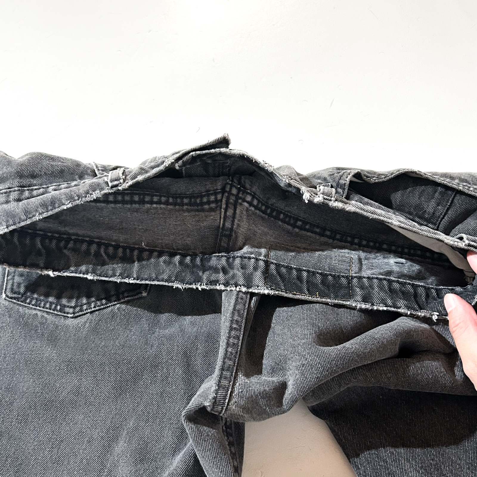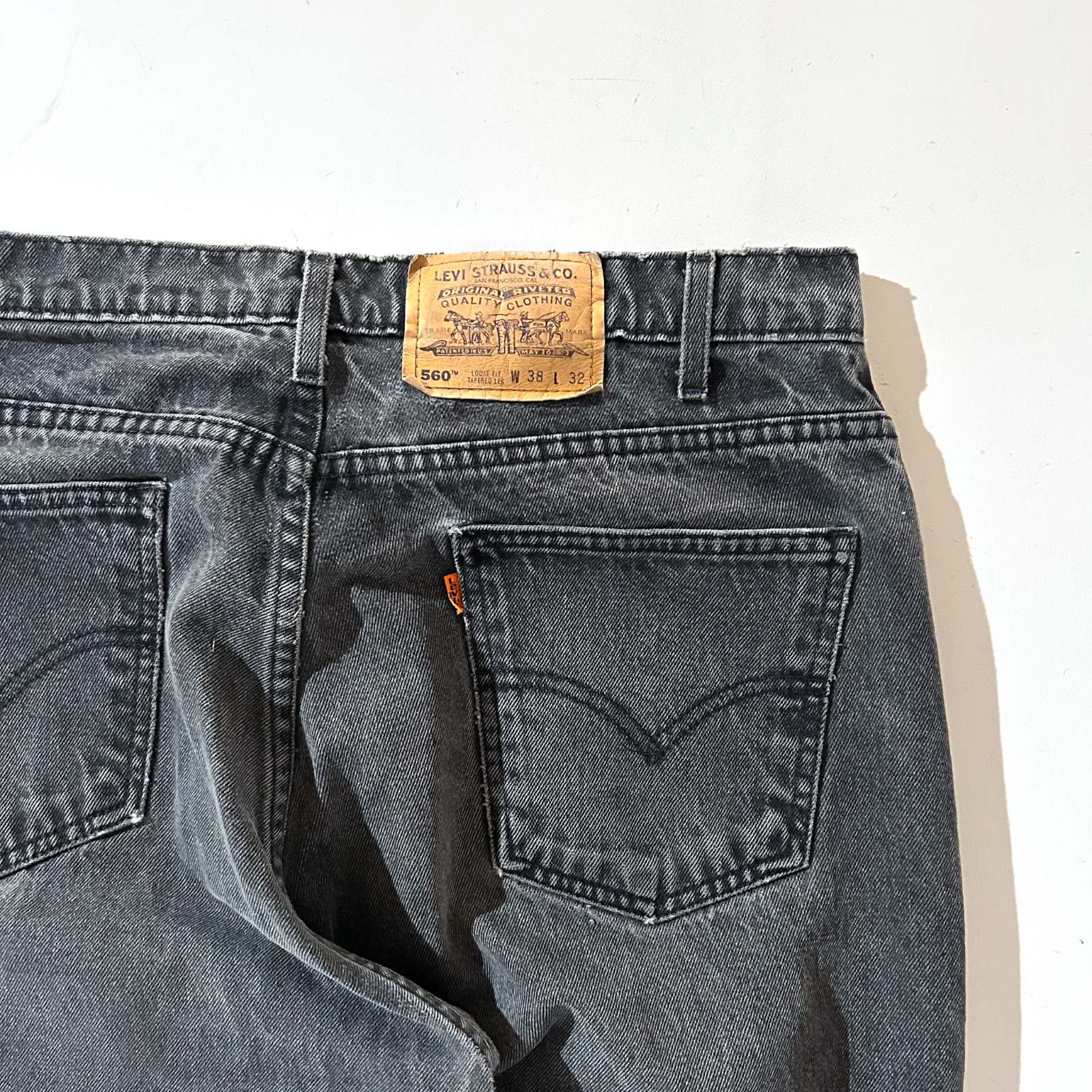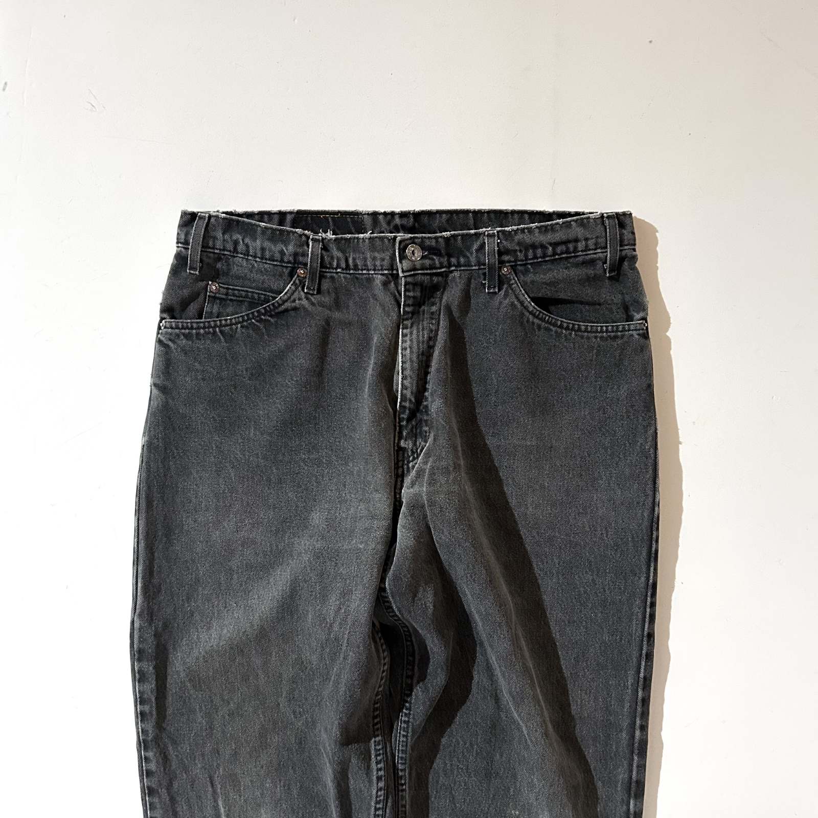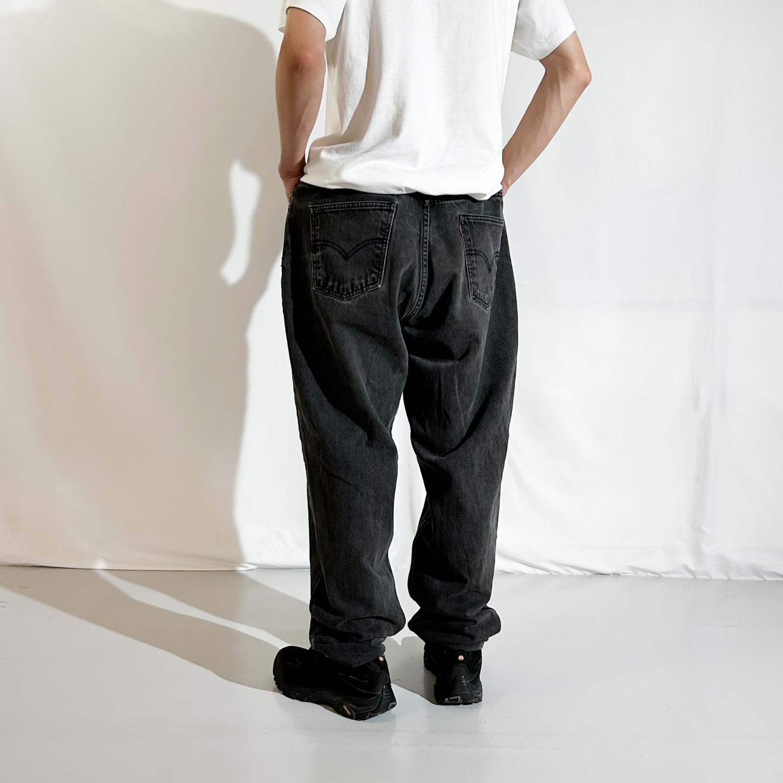 なかなか探すのが難しくなってきた90年代頃のLEVI’S 560 ブラックデニム。 今では枯渇が進み、玉数も少なくなってきた中で、この一本はサイズ感も◎。 太めに履けて、程よく溜めて履けるおすすめサイズ感です。 よく「90年代の560は裾幅がキツくて履きづらい」と言われることもありますが、 この個体はレングスが長めなので、逆にクッションを活かして綺麗に履けるのがポイント。 また、裾やシームに表れたダメージも良い雰囲気を演出しており、 新品では出せない“古着らしさ”を存分に感じられる仕上がりに。