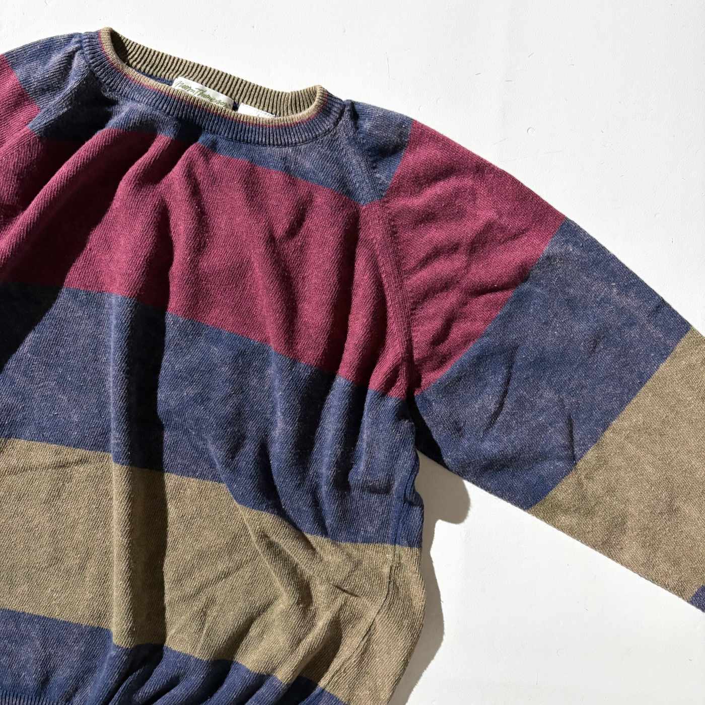 90's~ "MADE IN ITALY" NormThompson コットン 太ボーダー ニット セーター(マルチカラー)