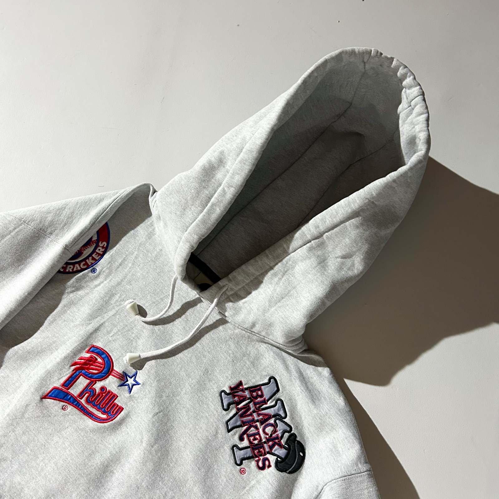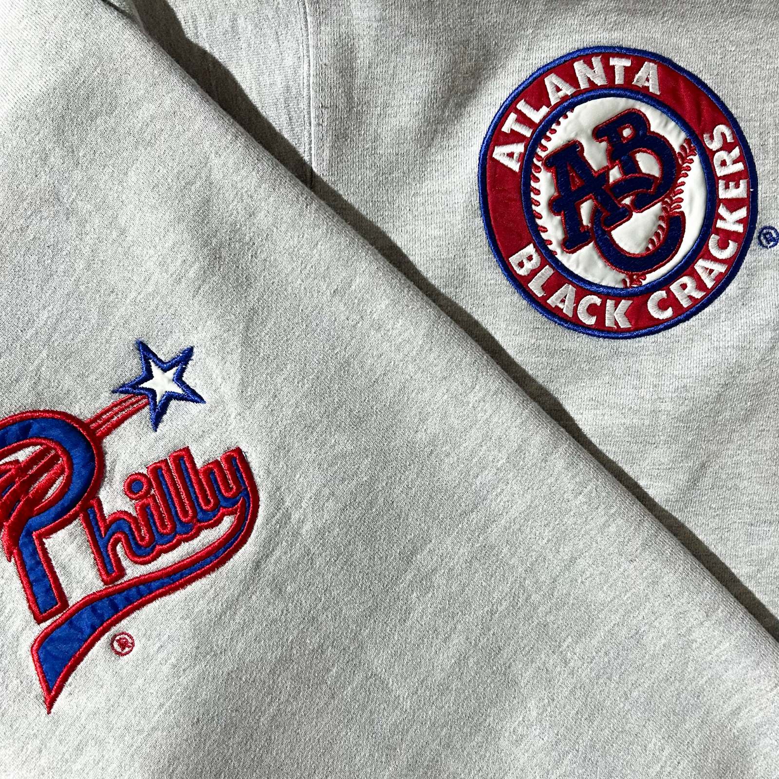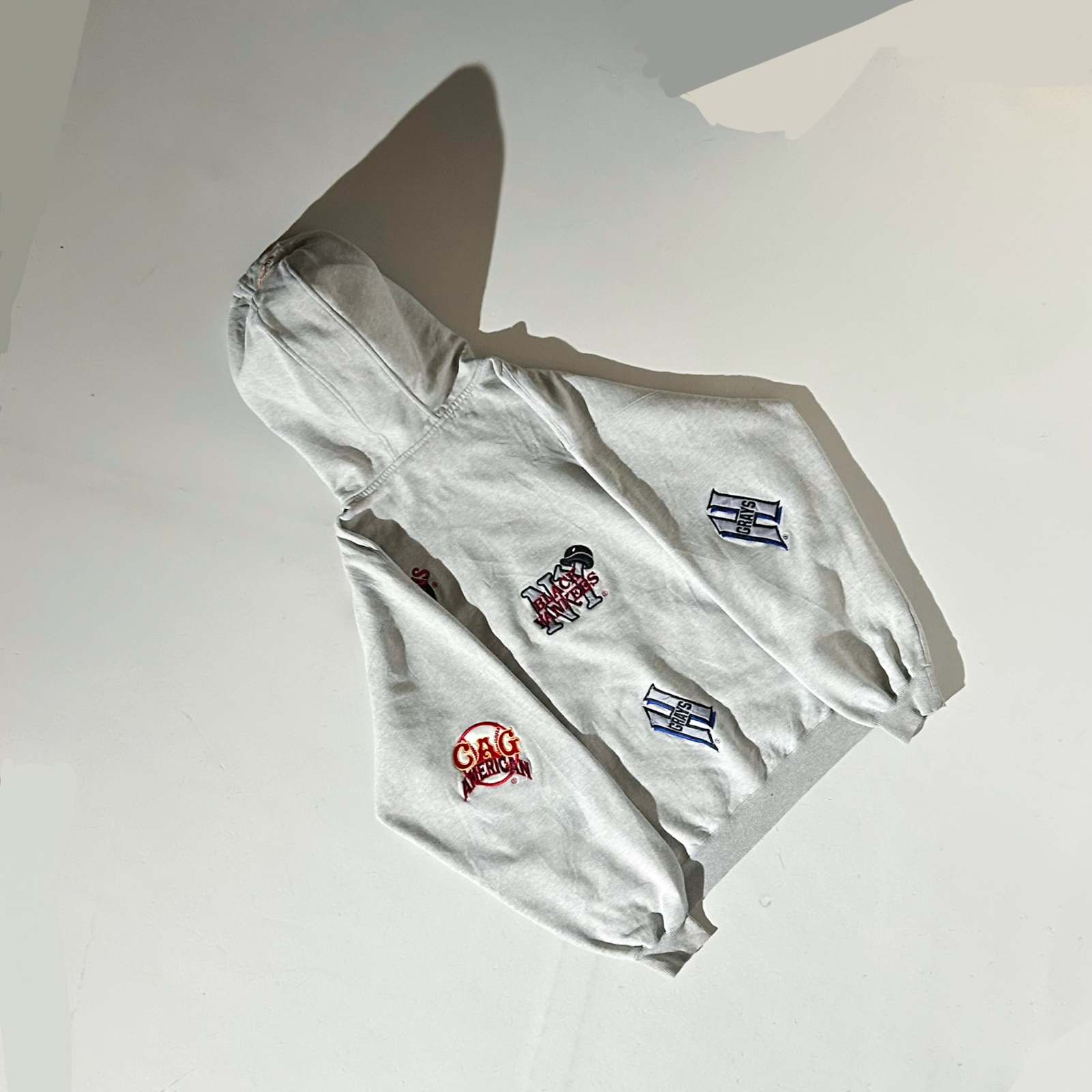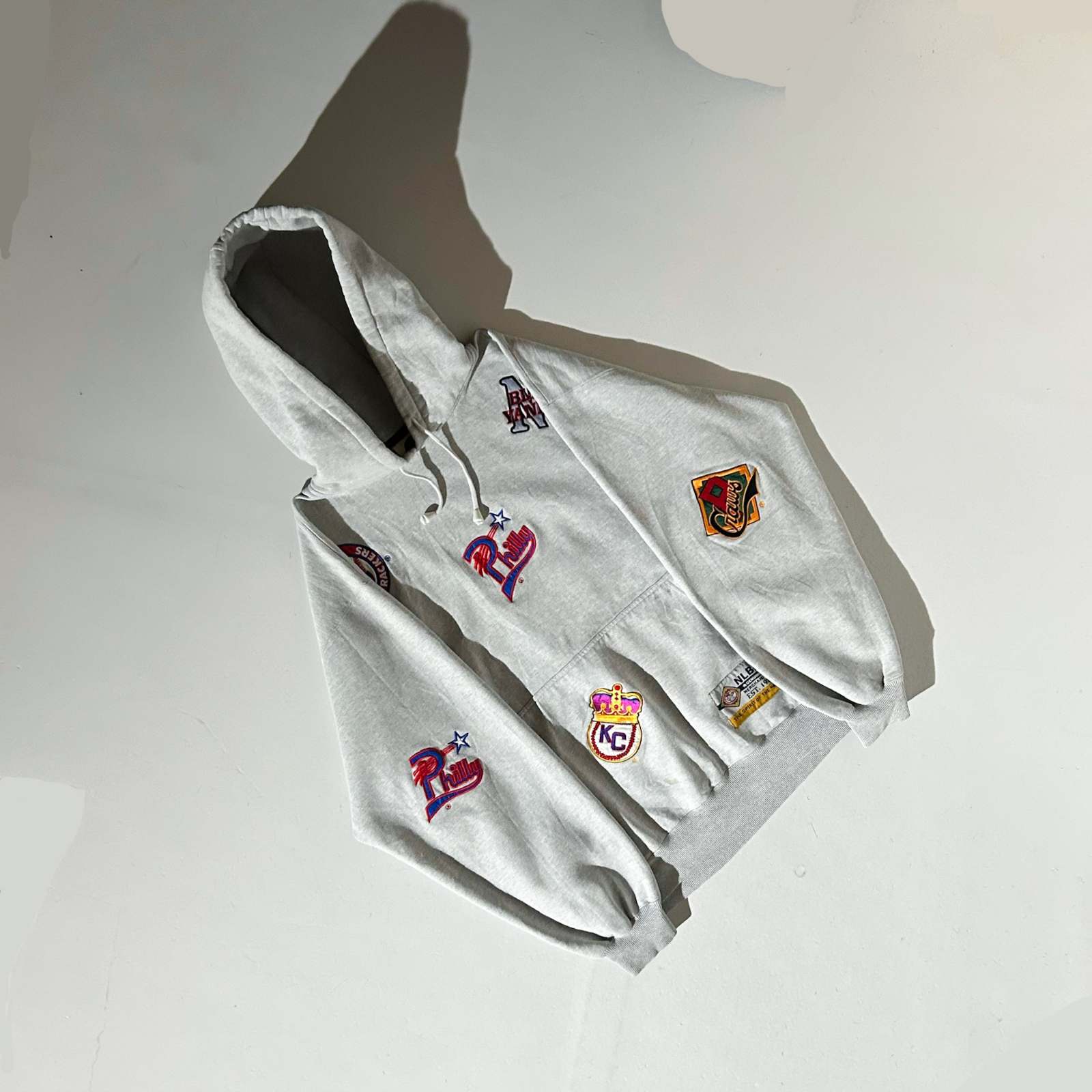 NLBのスウェットパーカ。チームロゴがパターンデザインされたファッショナブルなアイテム。持ったら分かる''ヘビーウェイト''なタフな生地感。フードはダブルフェイス。フード上の刺繍がクロスカラーズっぽくて好きですね。